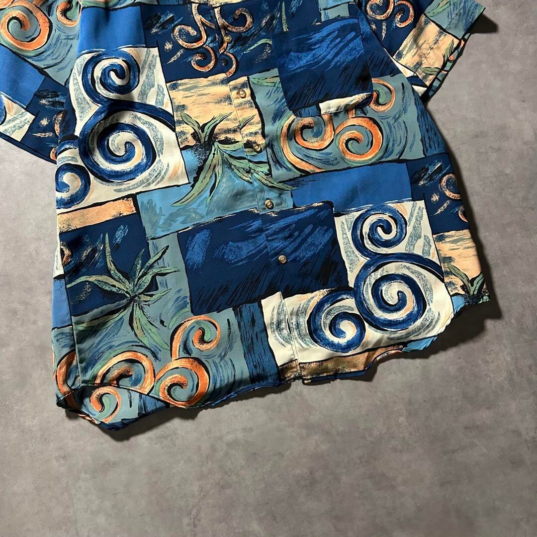ヴィンテージ アートパターン ブルー レトロ デザイン 総柄 シャツ