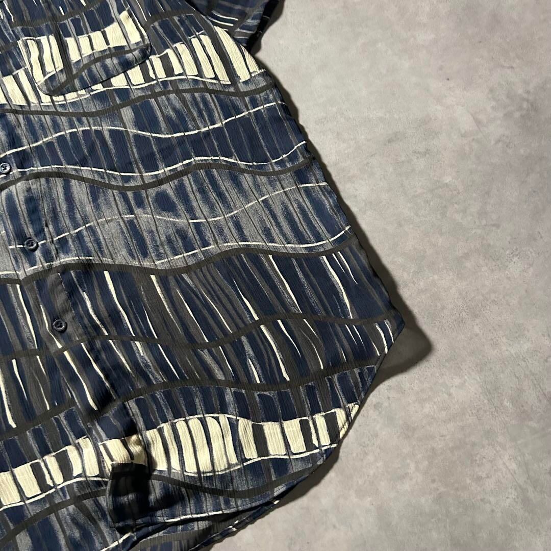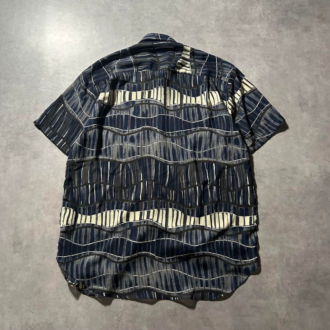 ヴィンテージ ネイビー ストライプ ヨーロピアン レトロ デザイン シャツ