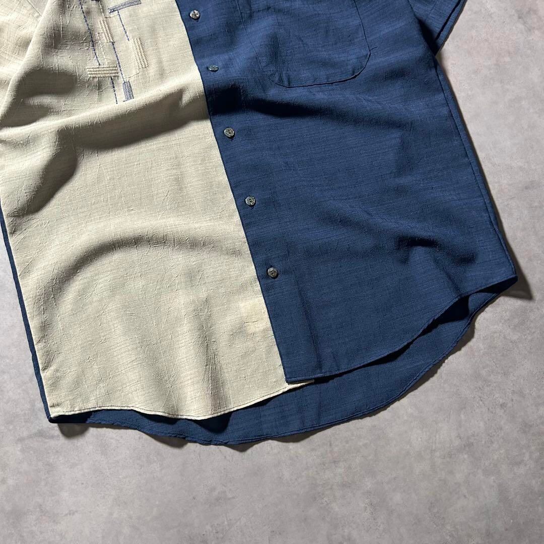ヴィンテージ 切り替え ポケット 刺繍ロゴ ネイビー デザイン レトロ シャツ