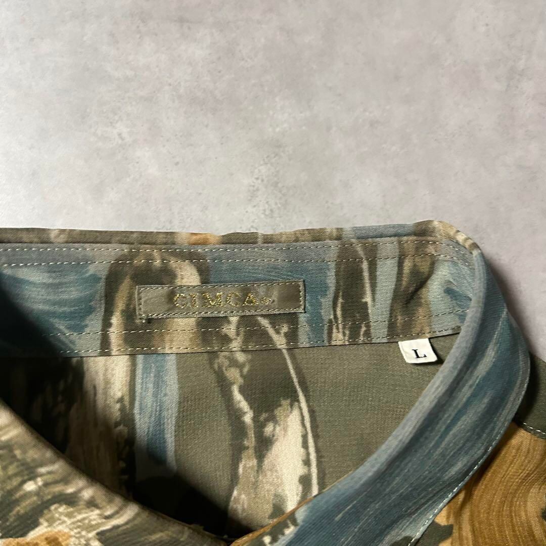 ヴィンテージ 総柄 グリーン モード デザイン アートパターン シャツ