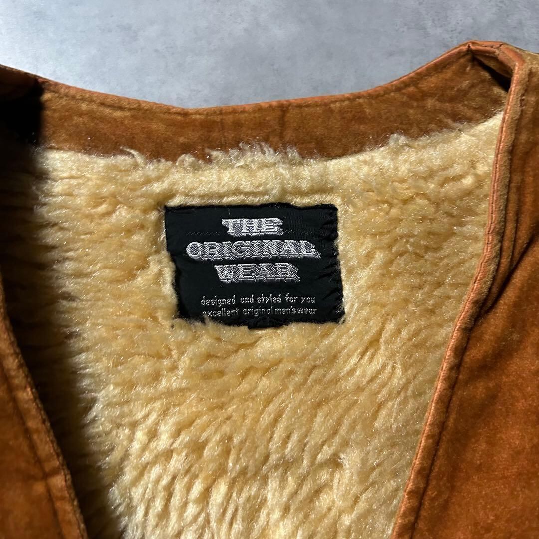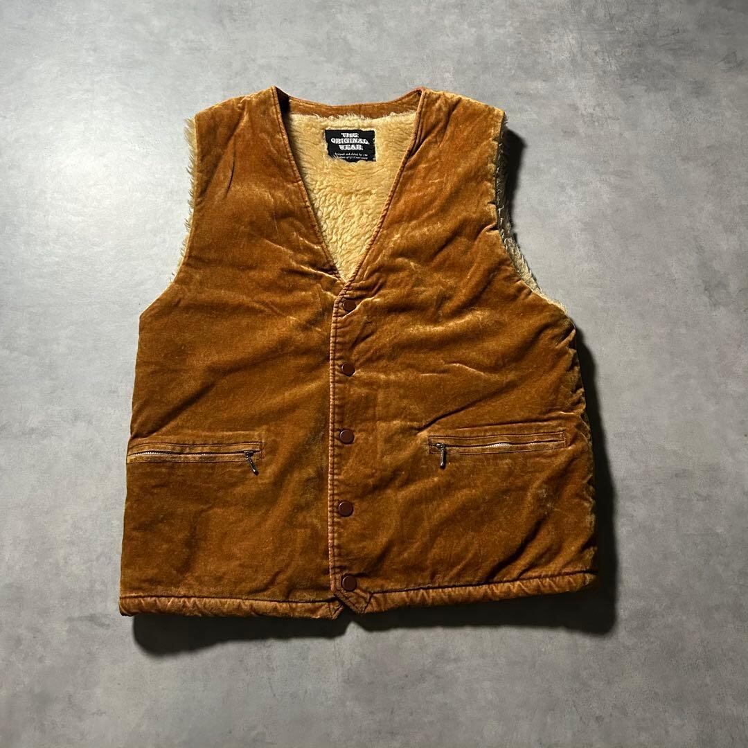 ヴィンテージ フェイク レザー ボア スナップボタン デザイン ベスト