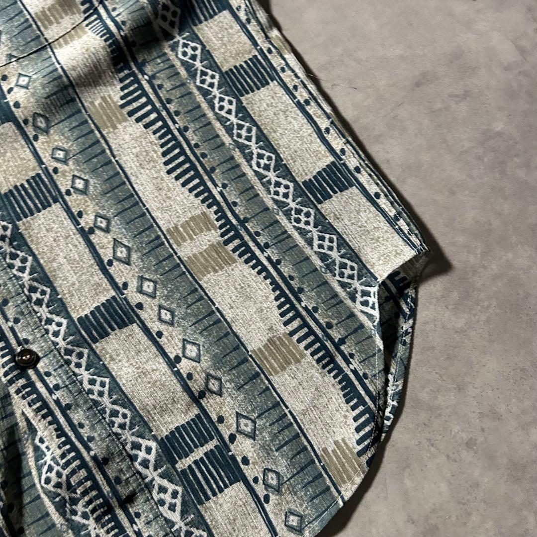 ヴィンテージ 総柄 レトロ グリーン デザイン レトロ ヨーロピアン シャツ