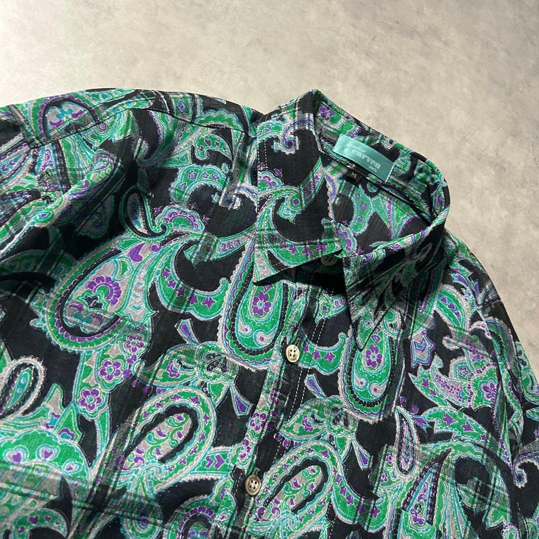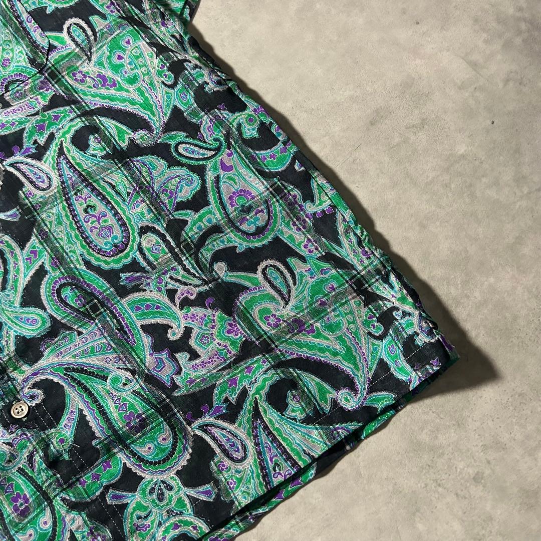 ヴィンテージ ペイズリー グリーン パターン レトロ 古着屋 シャツ