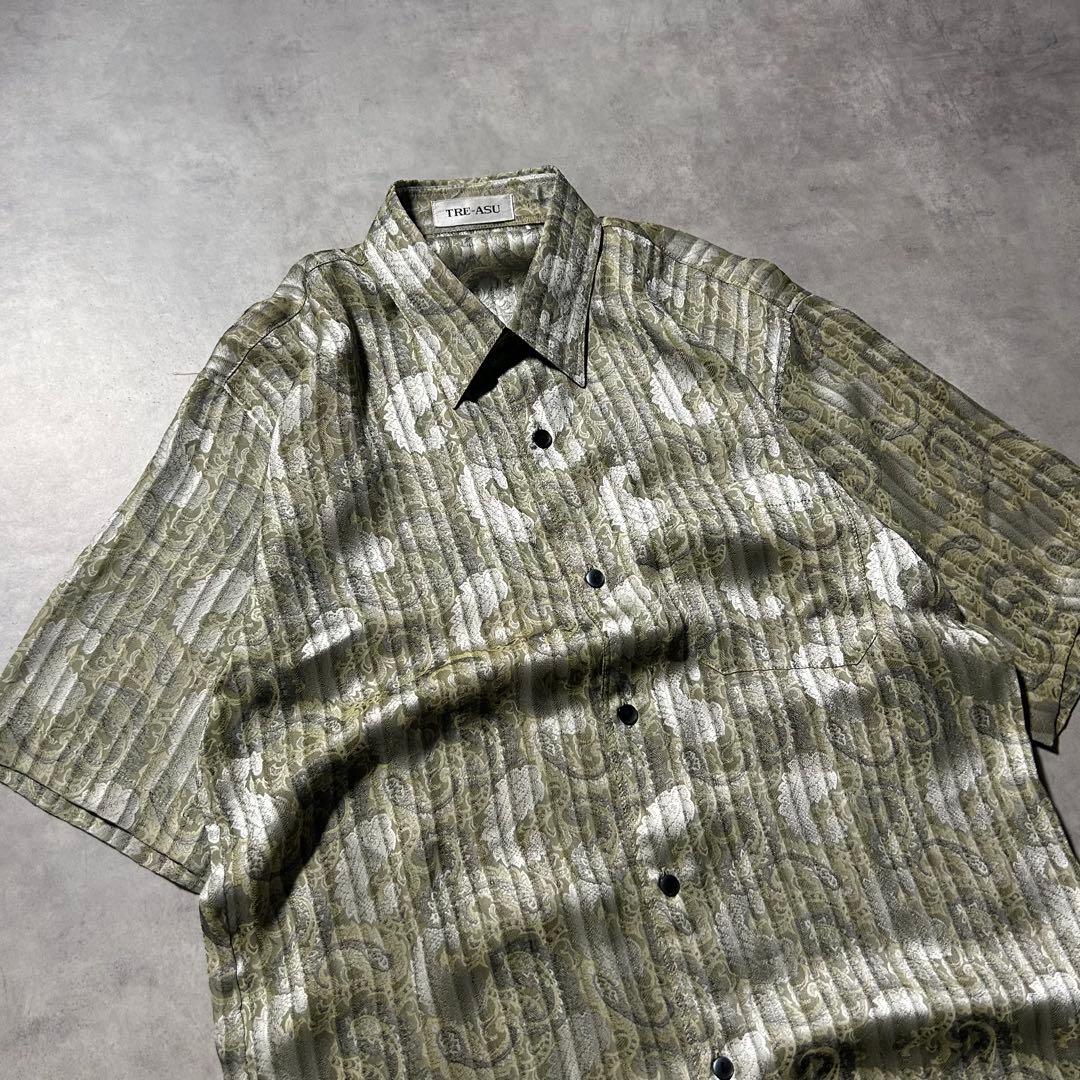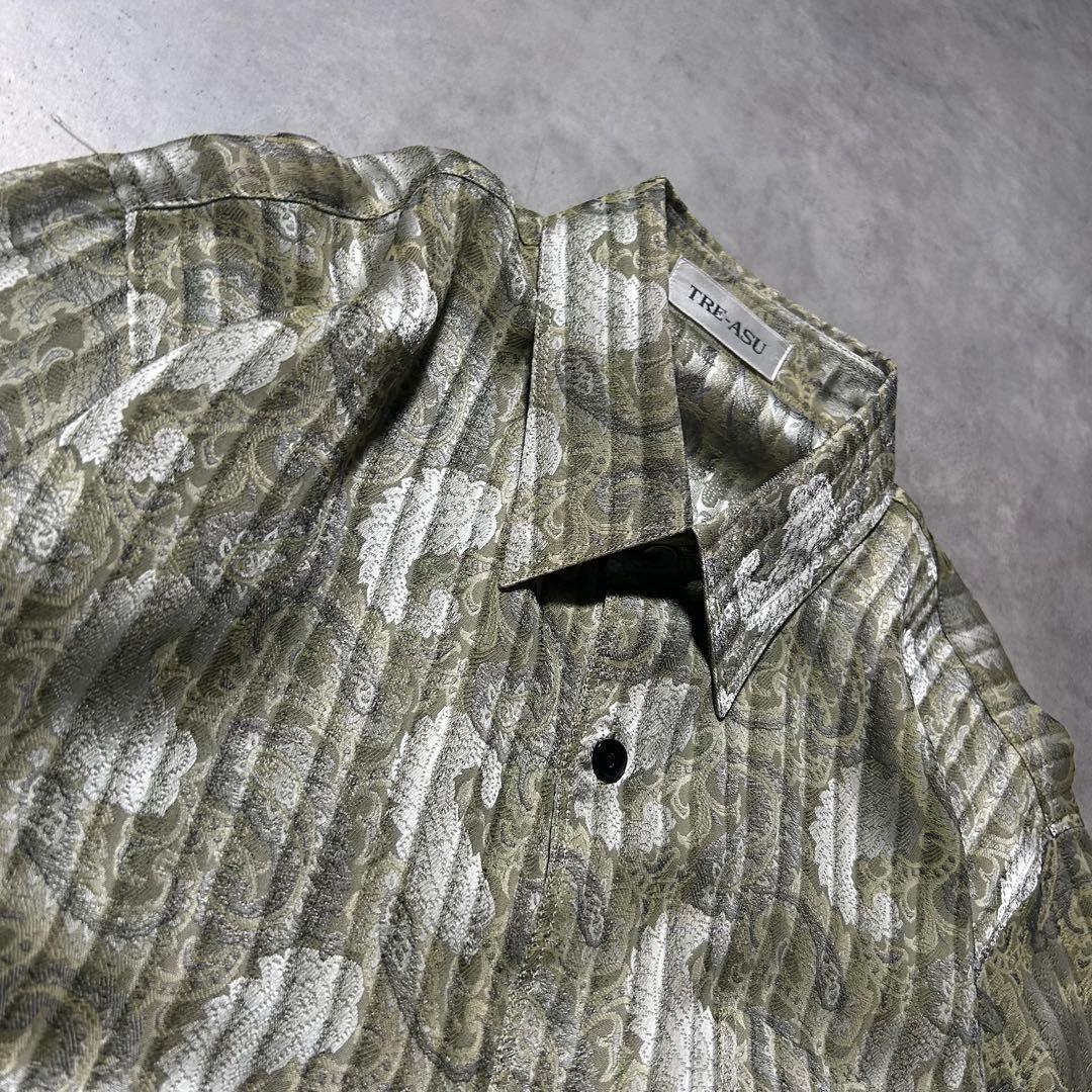 ヴィンテージ サテン ペイズリー 模様 チャイナ デザイン レトロ シャツ
