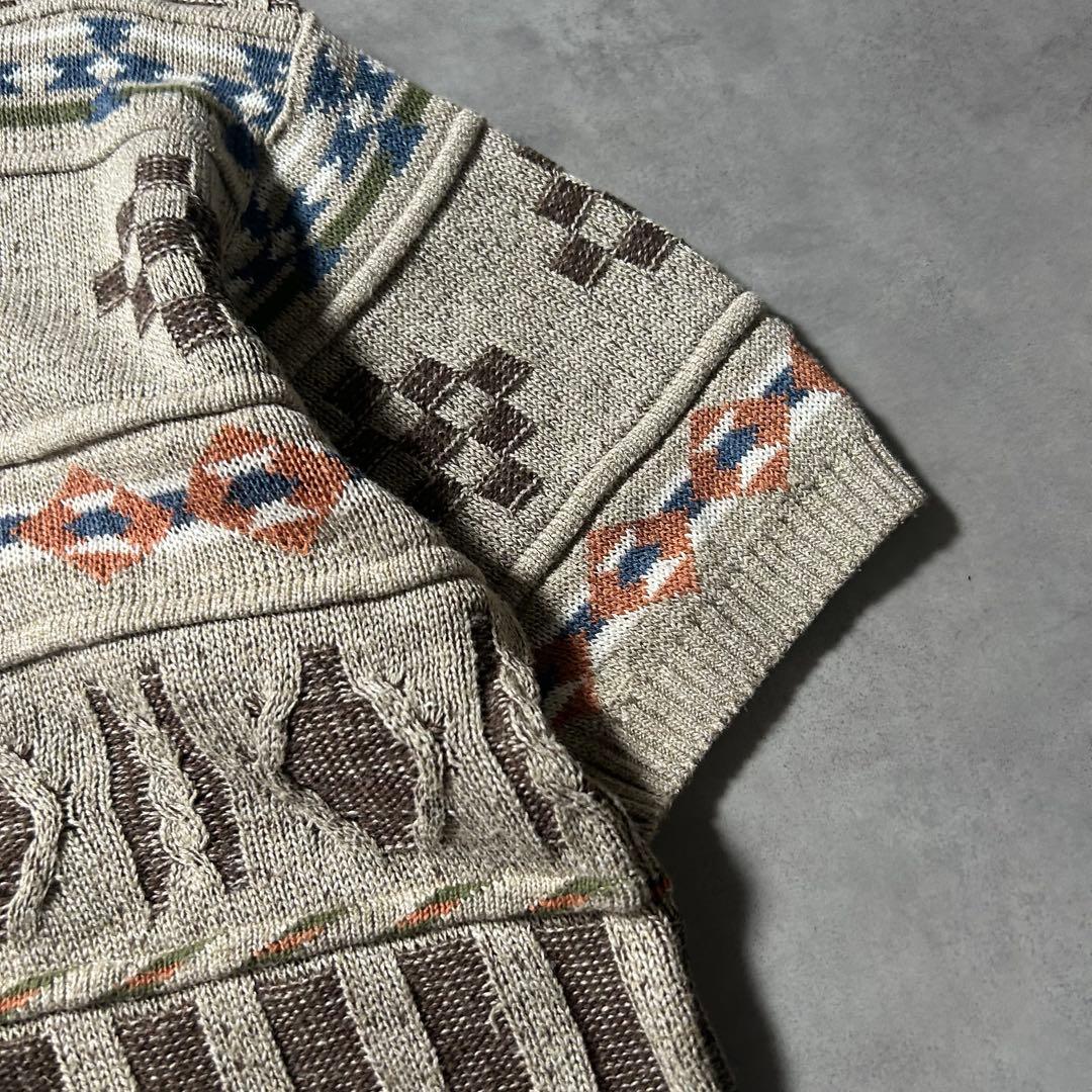 ヴィンテージ サマーニット 3D ブラウン デザイン ニット Tシャツ