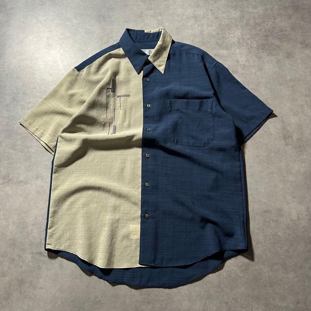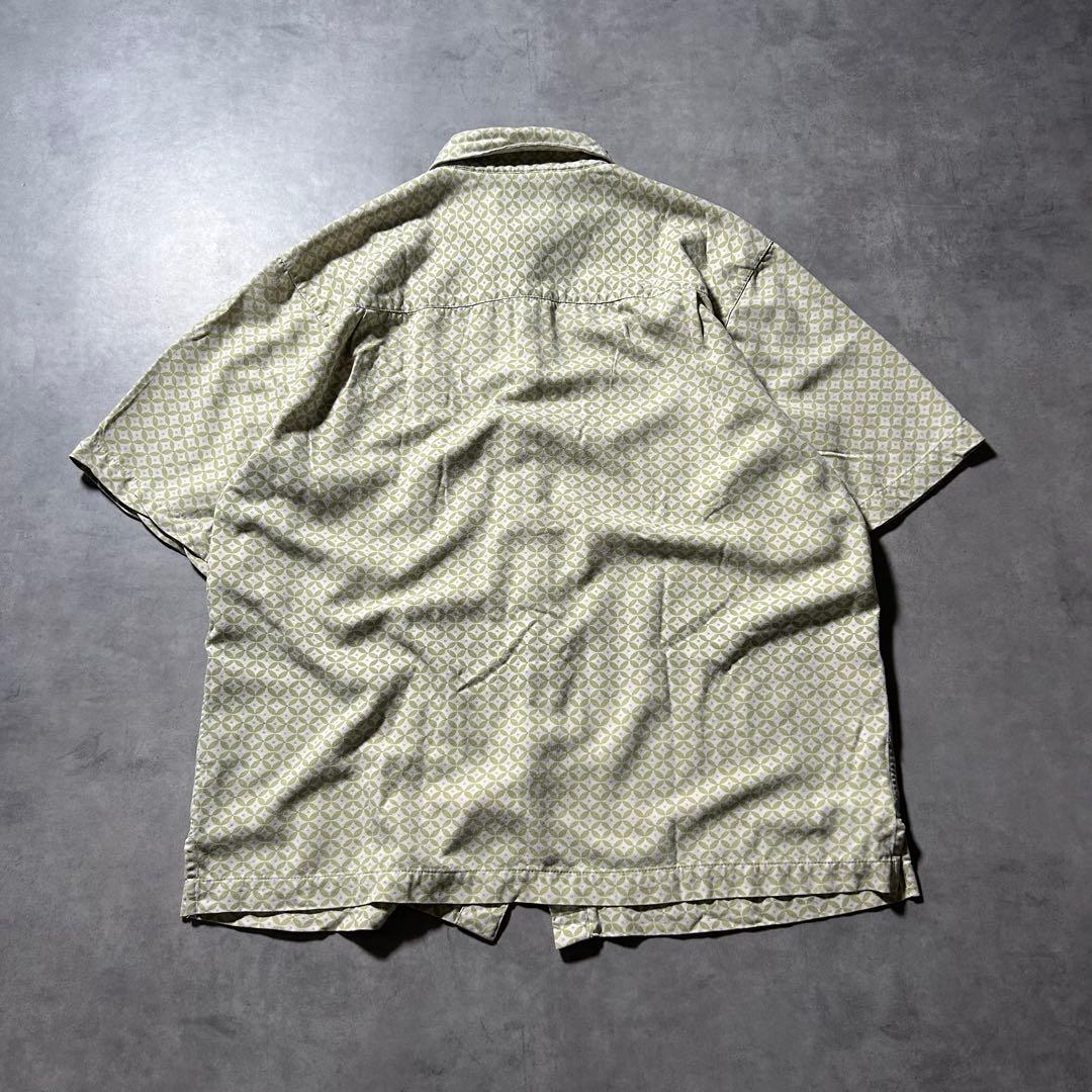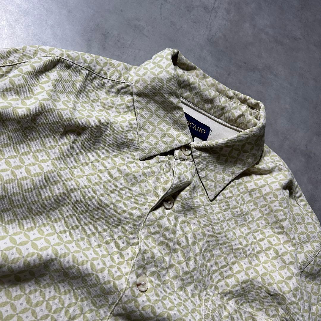 TOSCANO シルク 幾何学 模様 パターン 黄緑 和柄 デザイン シャツ
