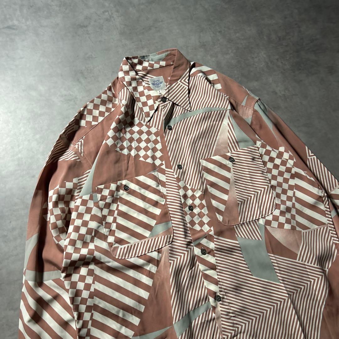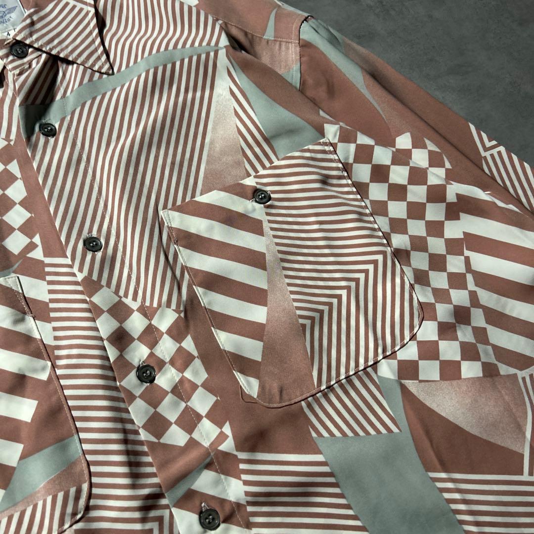ヴィンテージ 総柄 幾何学 模様 切り替え レトロ デザイン シャツ