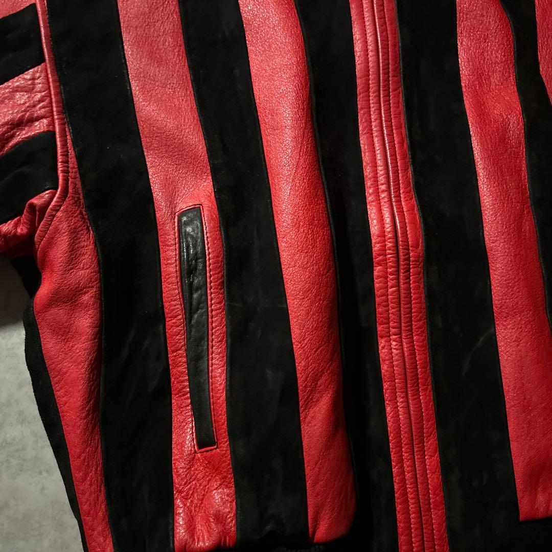 【NA】ヴィンテージ レザー ストライプ ボーダー レーシングジャケットブルゾン
