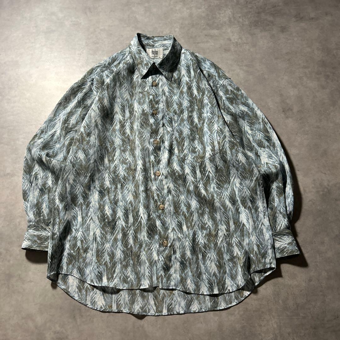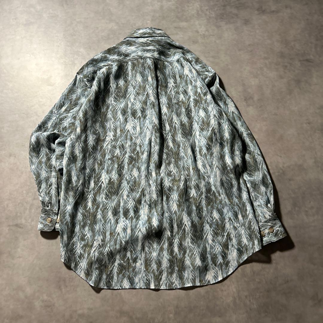 ヴィンテージ 幾何学模様 シアー 透け感 ブルー レトロ アート シャツ