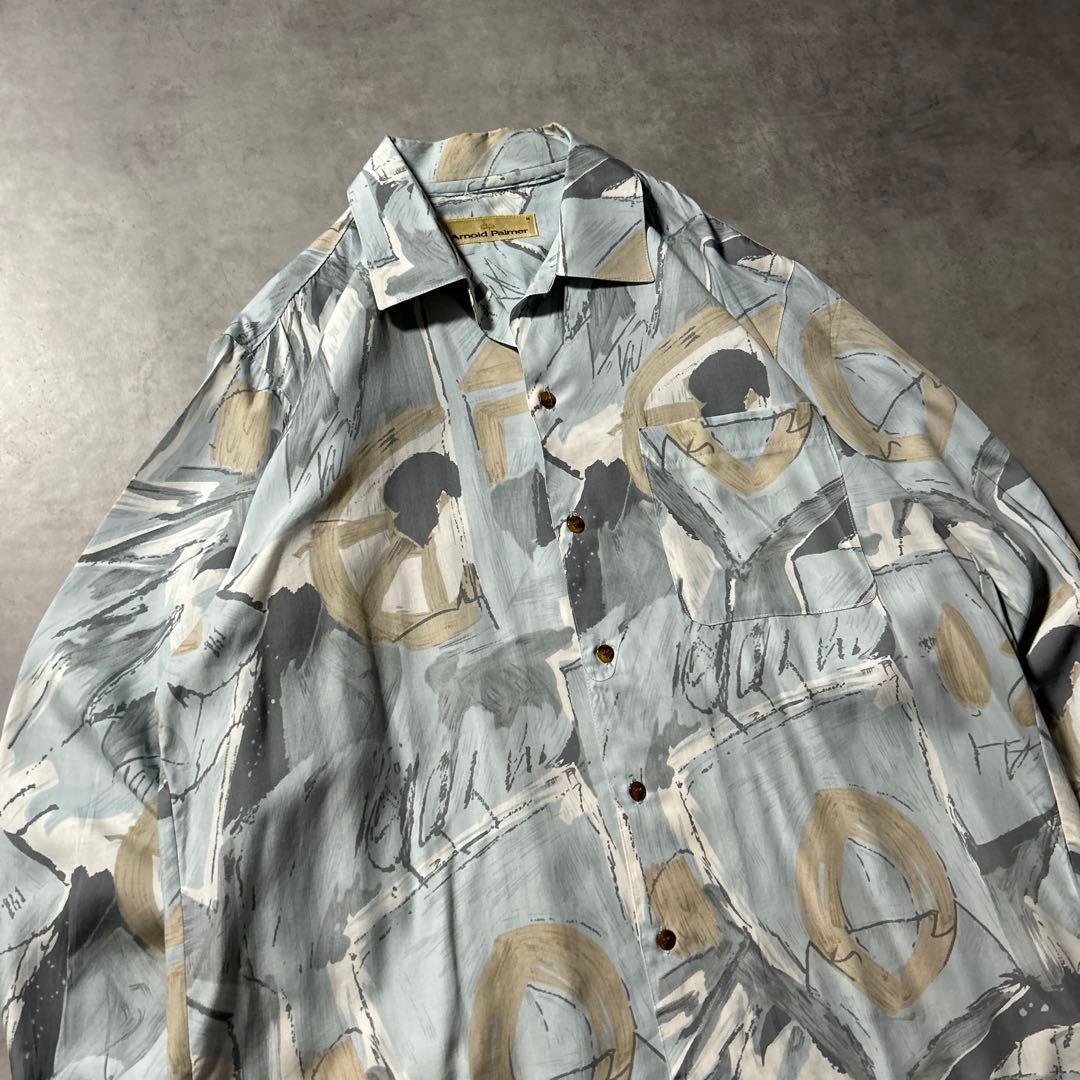 ヴィンテージ 総柄 レーヨン プルプル素材 オープンカラー デザイン シャツ