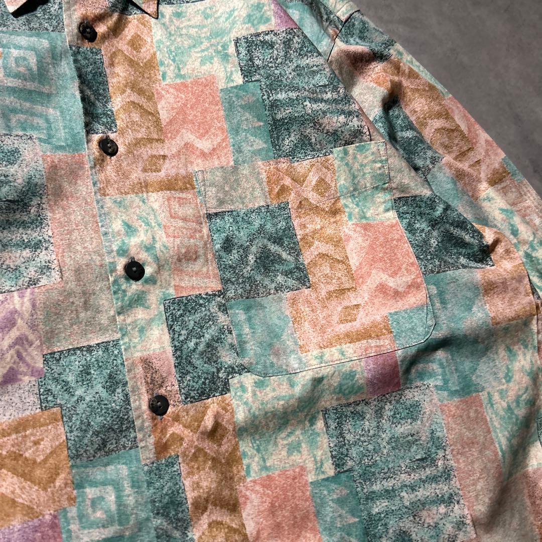 ヴィンテージ コットン 和柄 幾何学 模様 アートパターン シャツ