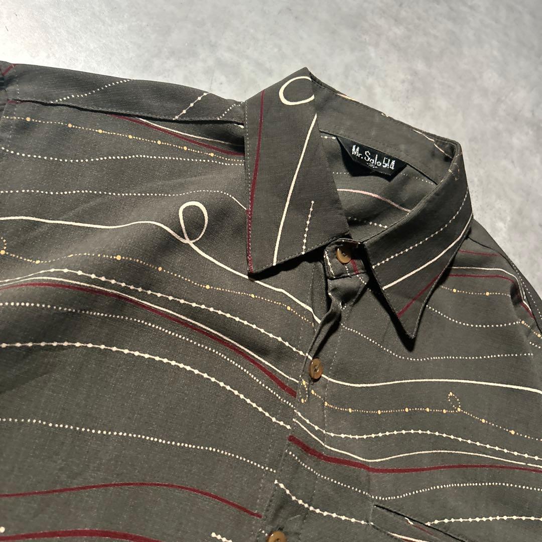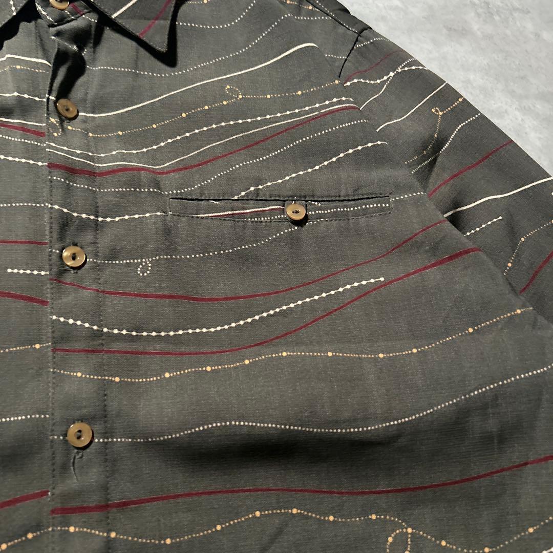 ヴィンテージ 総柄 カーキ レトロ ヨーロピアン アートパターン シャツ