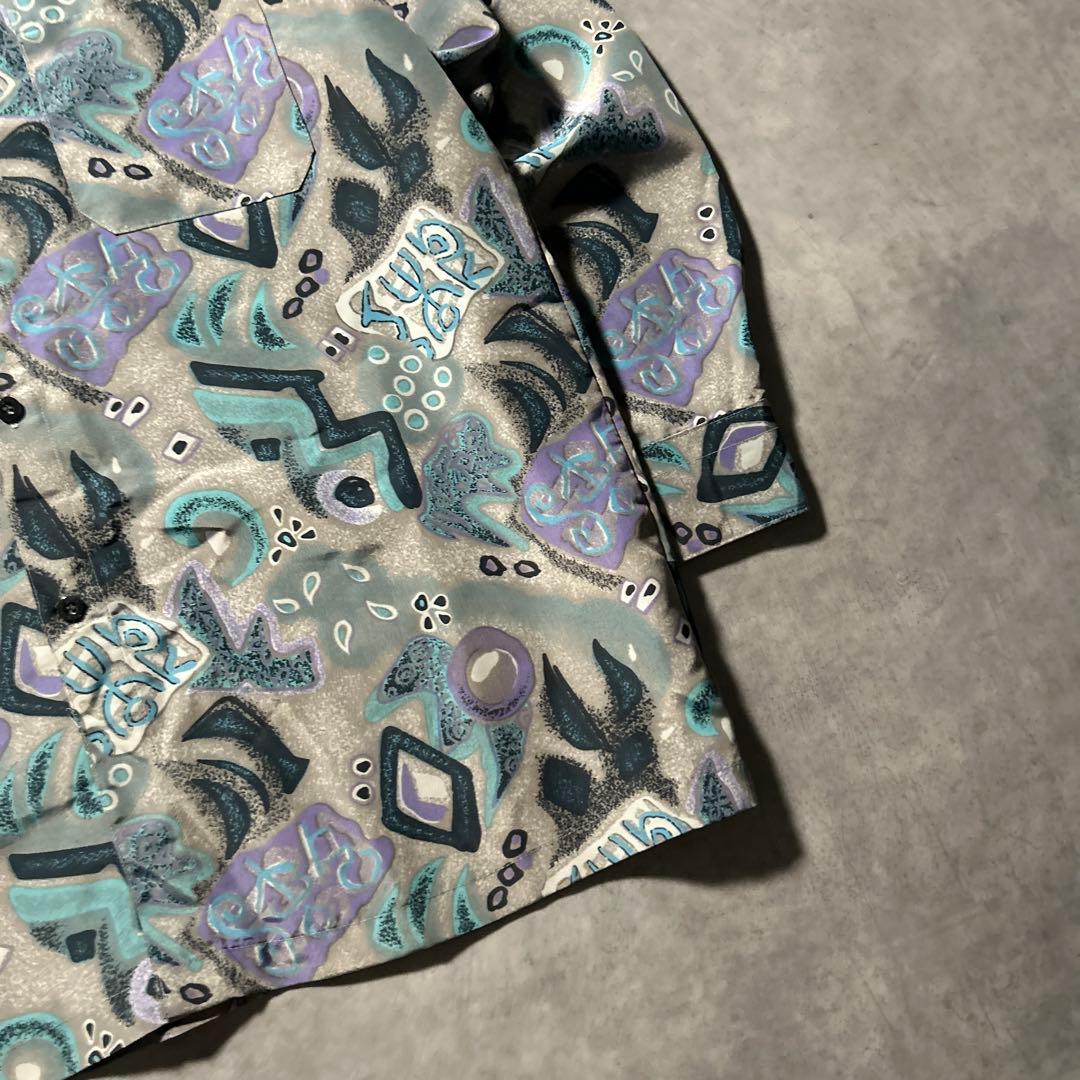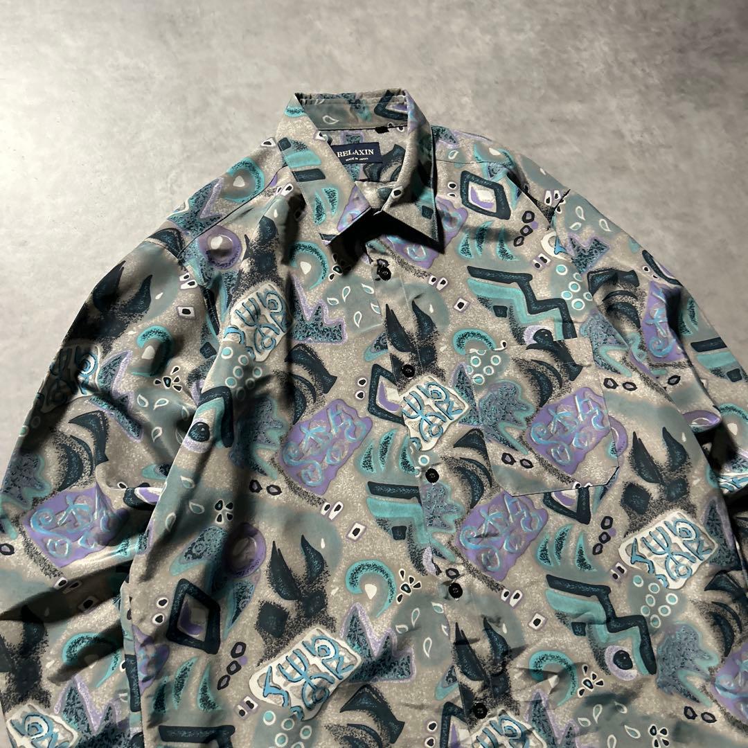 ヴィンテージ 総柄 海 ブルー レトロ パターン デザイン シャツ