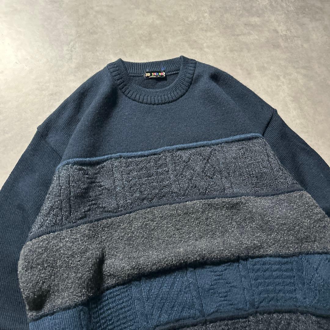 ヴィンテージ ネイビー ケーブル ボーダー マルチカラー ニットセーター