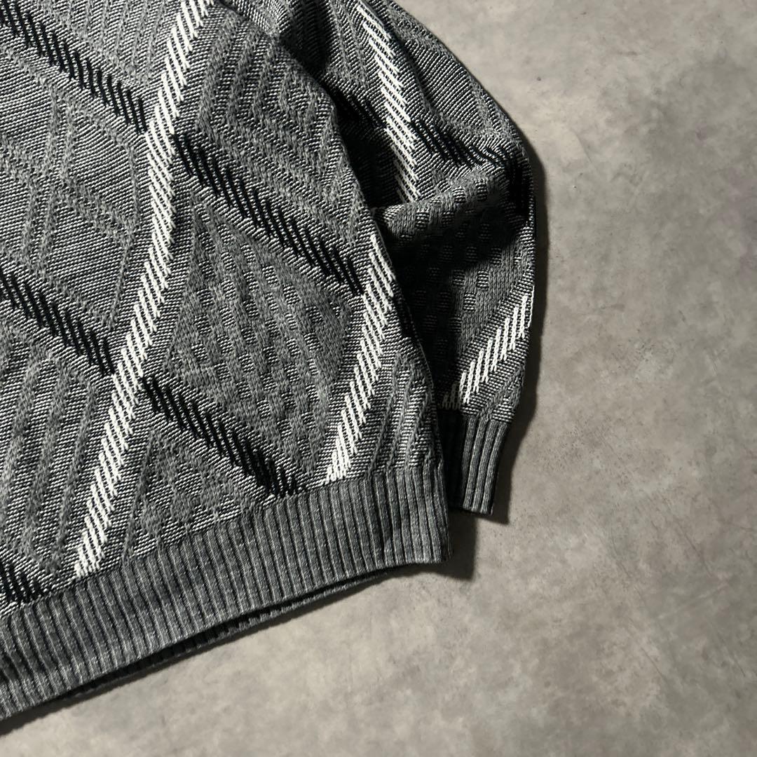 カナダ製 ヴィンテージ アーガイル チェック モノトーン ニット セーター