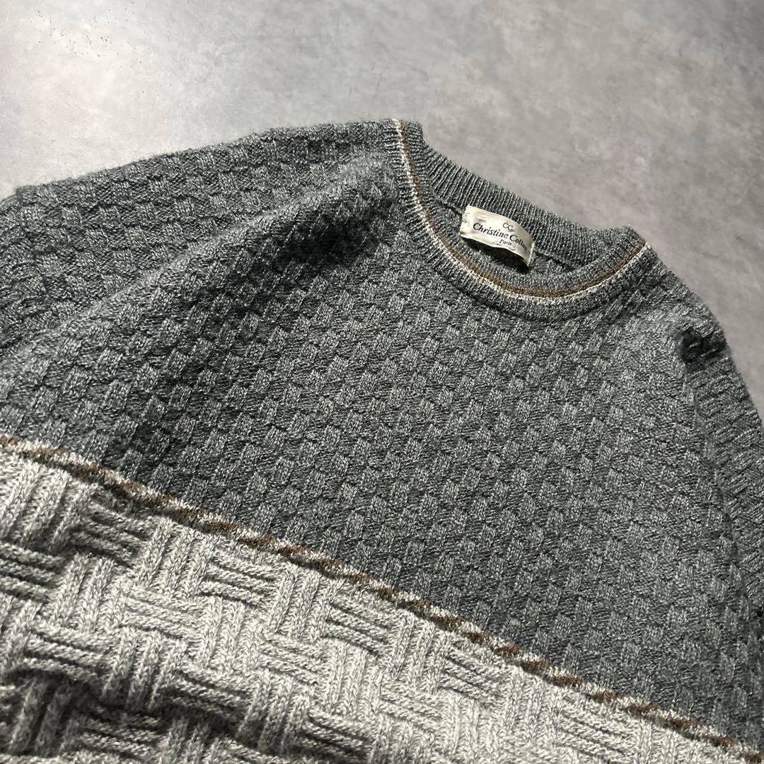 ヴィンテージ ボーダー ウール グレー ニット セーター レトロ