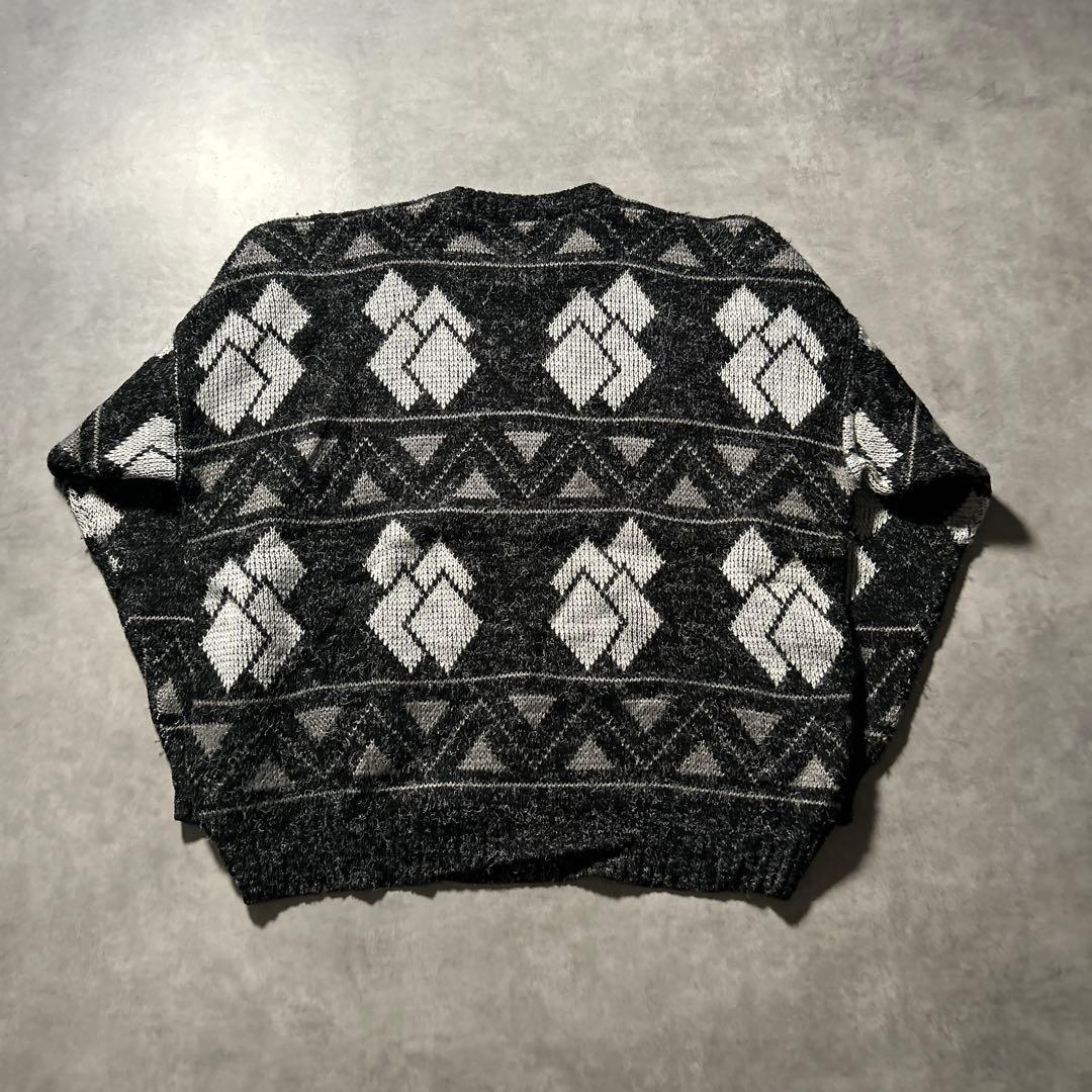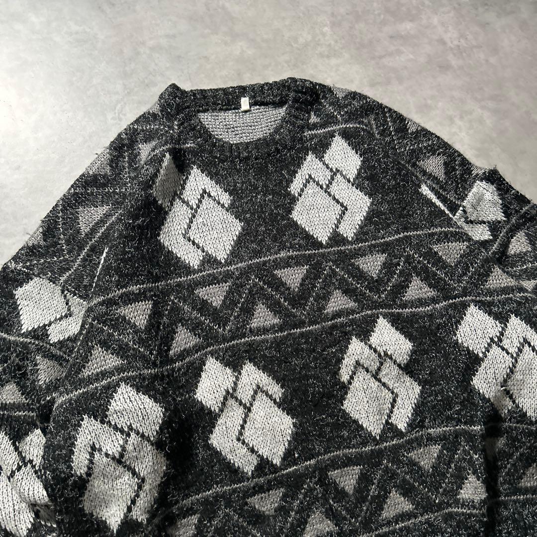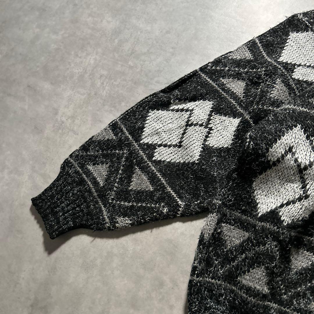 ヴィンテージ ノルディック柄 ギンガム ひし形 幾何学模様 デザインニット