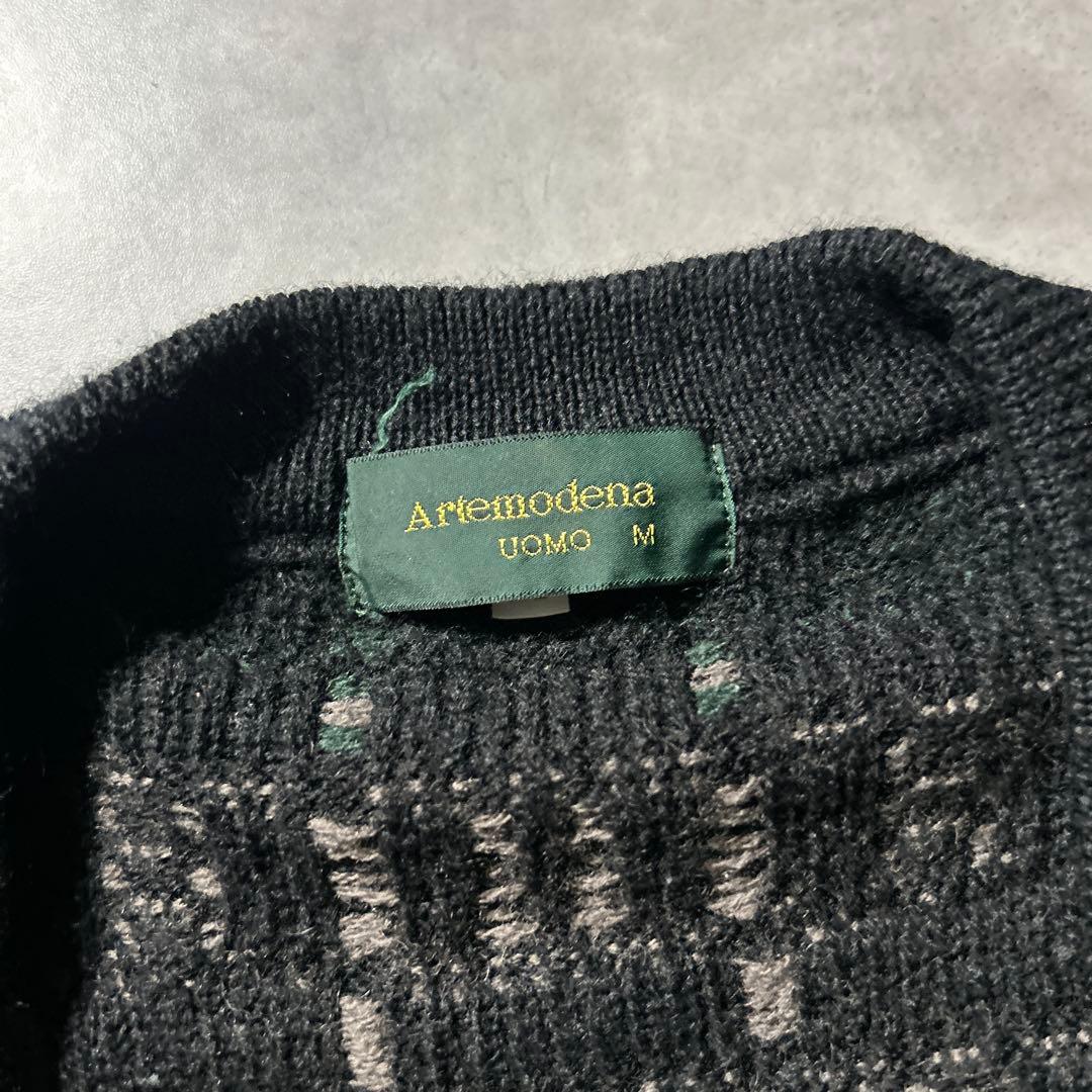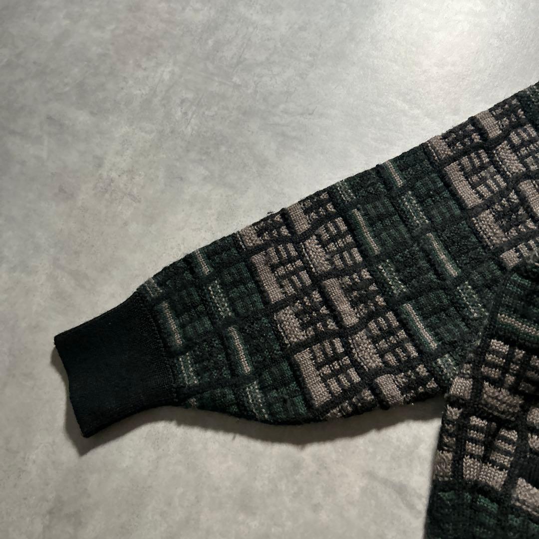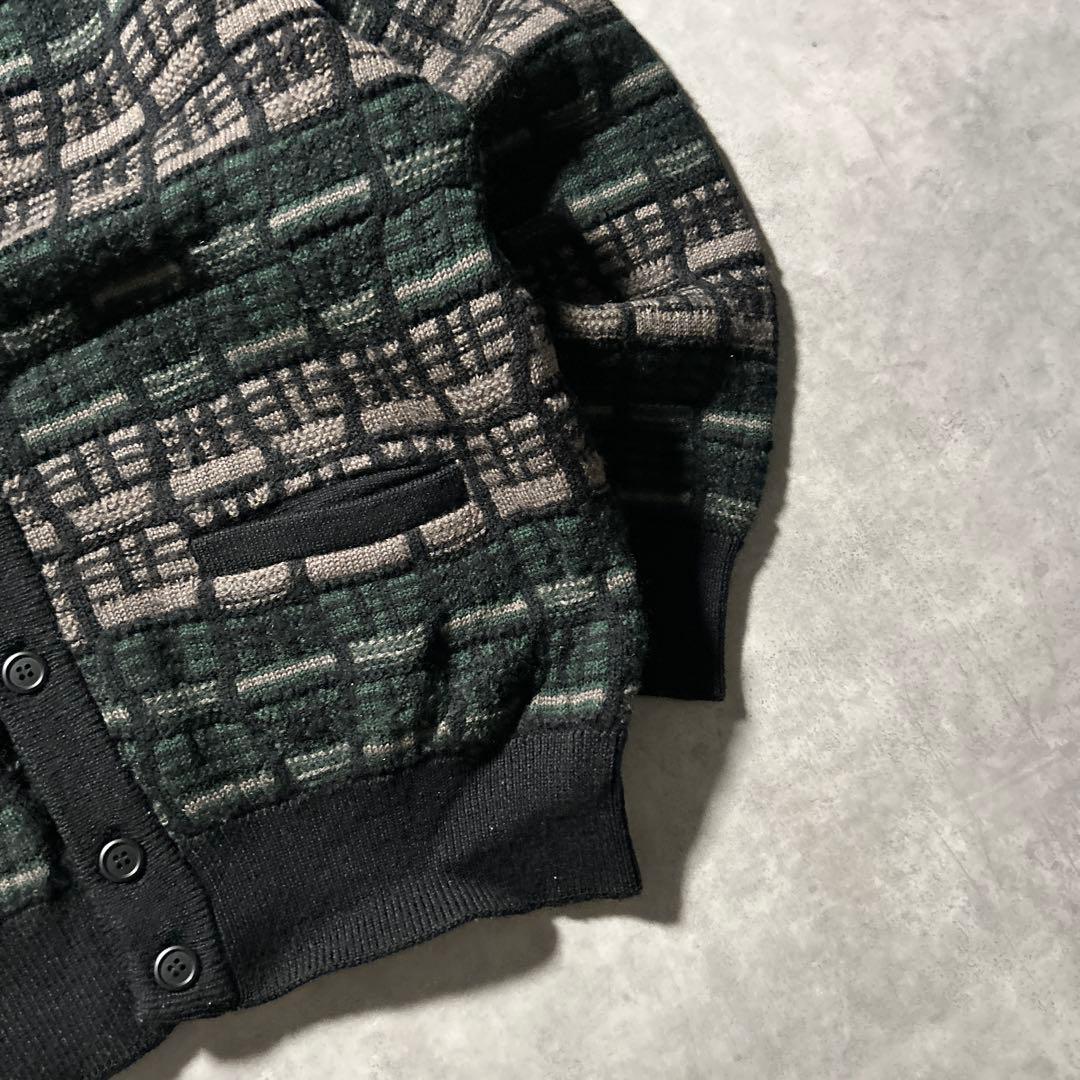 ヴィンテージ ケーブル マルチカラー 幾何学 模様 グリーン ニットカーディガン