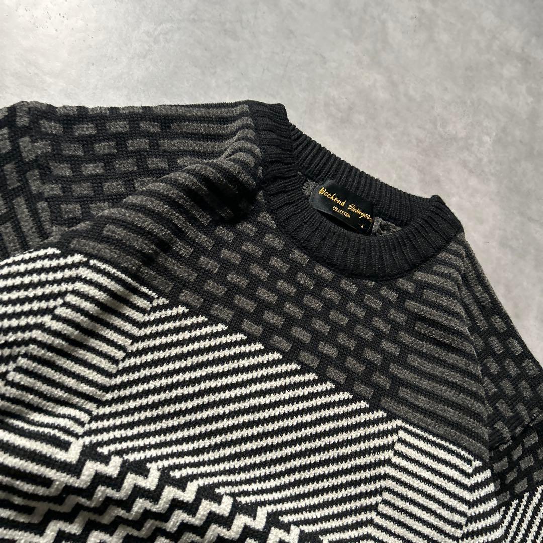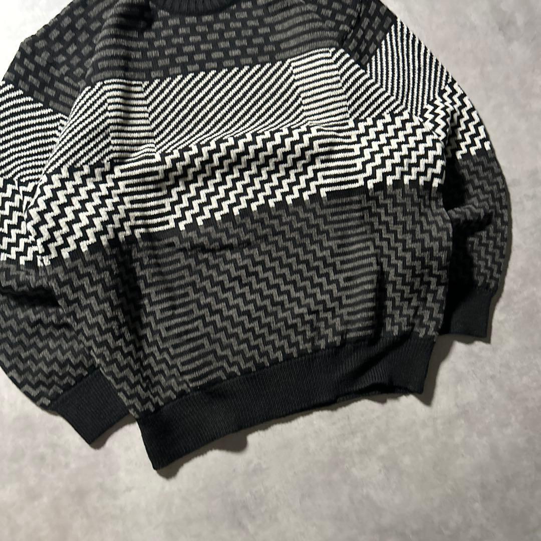 ヴィンテージ モノトーン ボーダー ケーブル レトロ ニット セーター