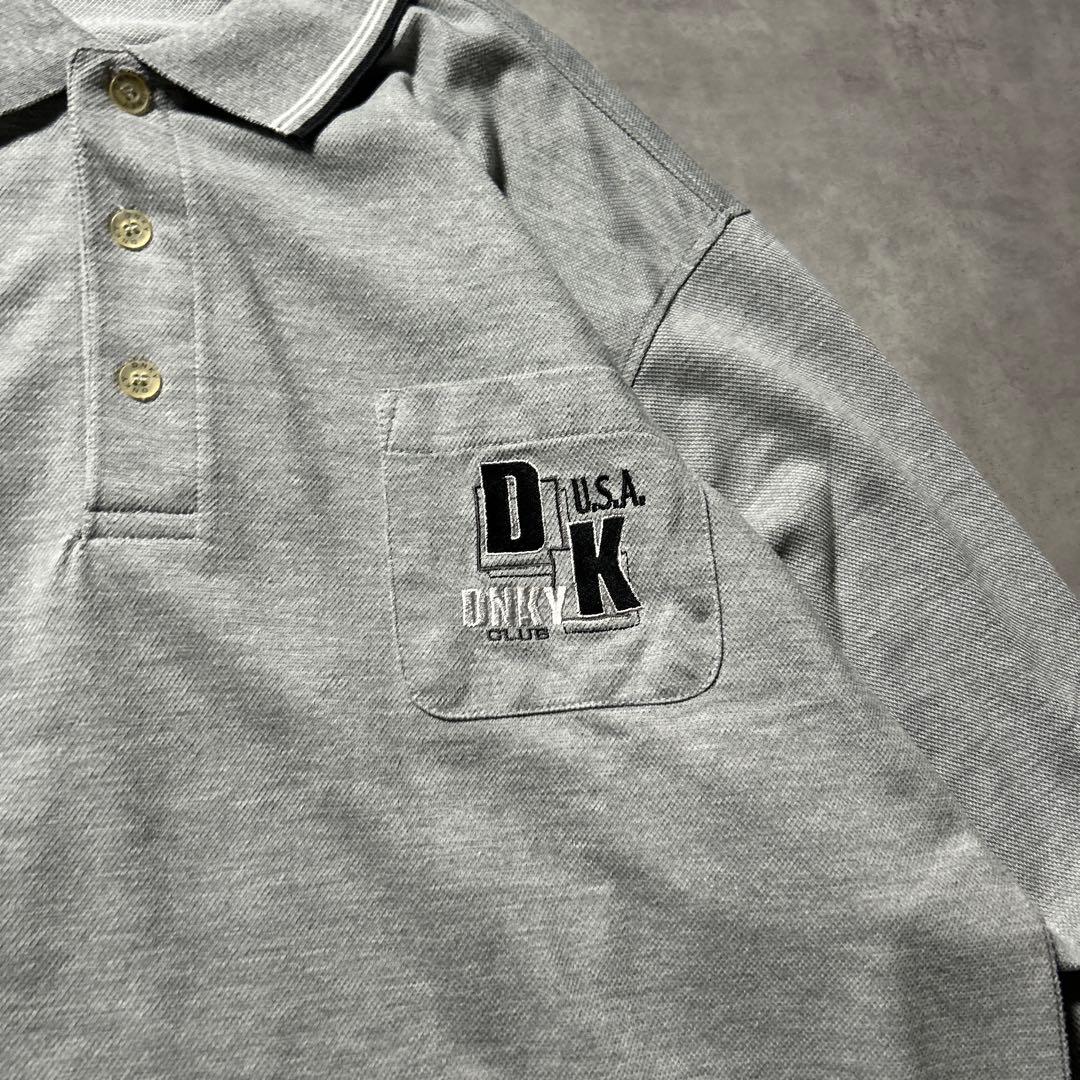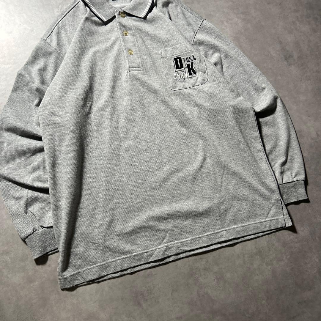 グレー ワンポイントロゴ 刺繍 ヴィンテージ ポロシャツ ゆるだぼ