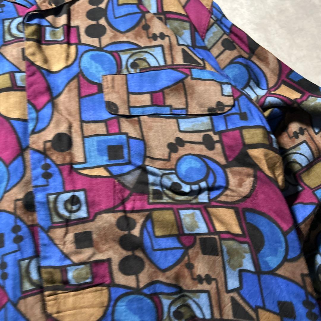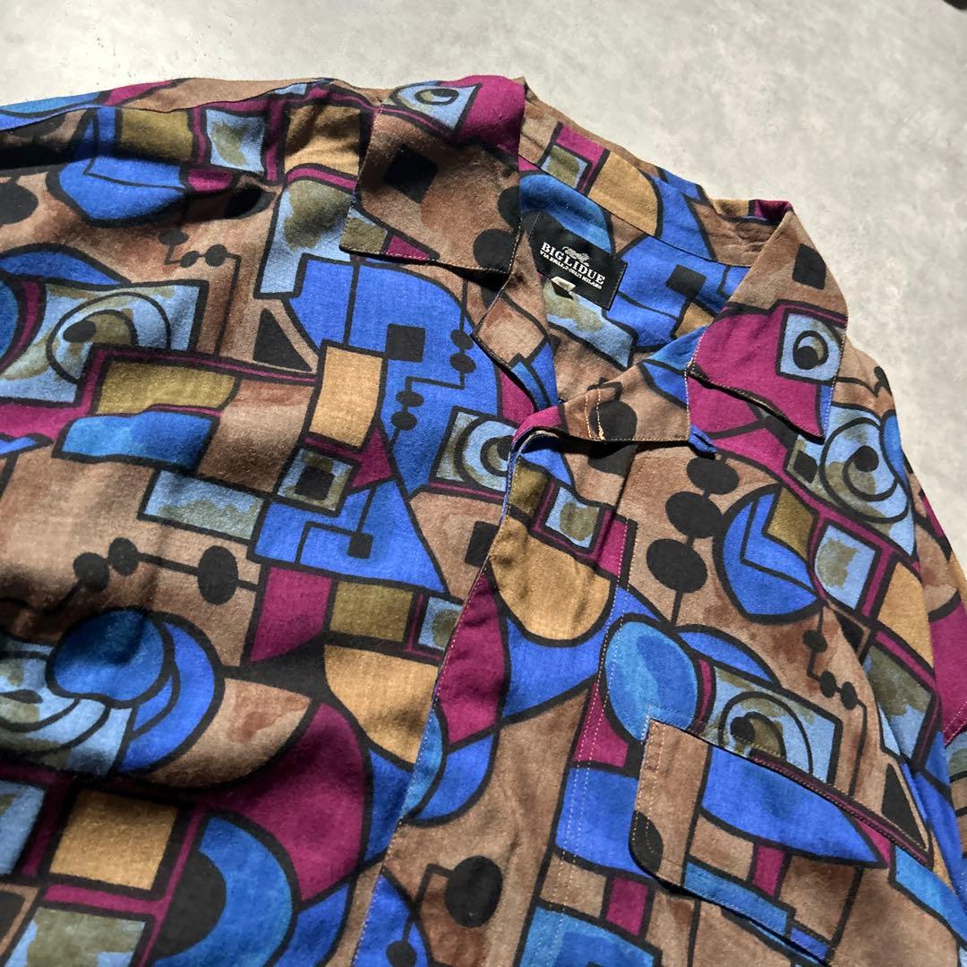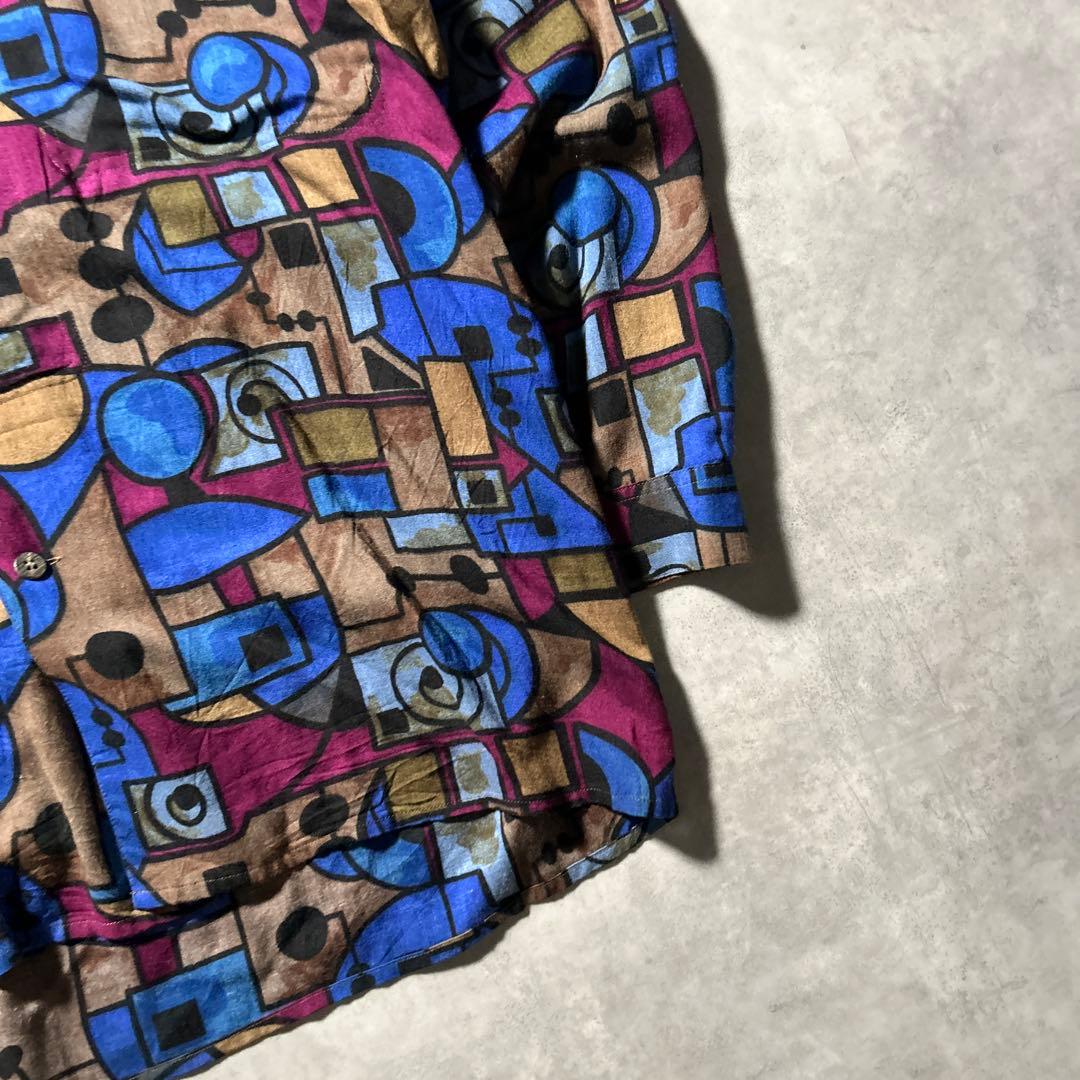 ヴィンテージ 総柄 レーヨン オープカラー シャツ モード ヨーロピアン シャツ