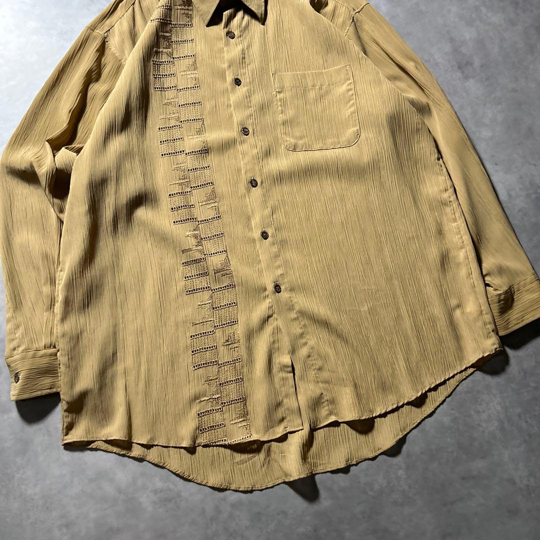 ヴィンテージ イエロー 切り替え ボーダー ワントーン デザイン シャツ