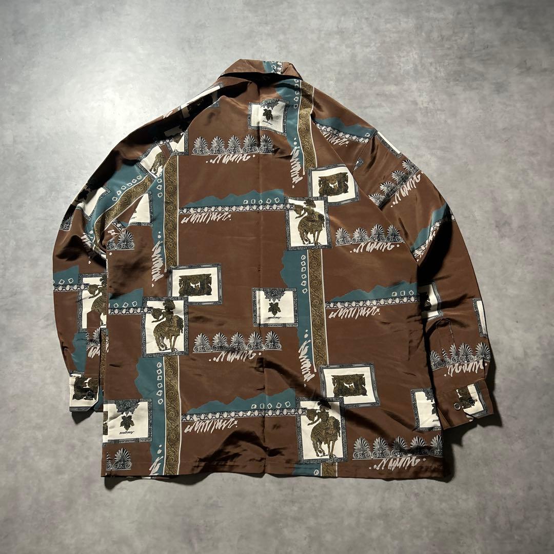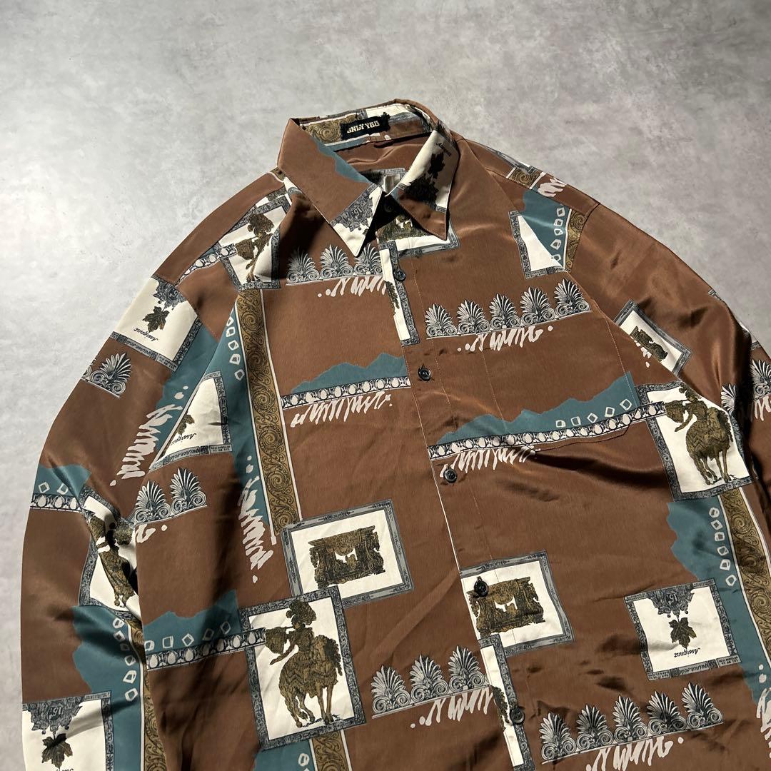 ヴィンテージ ヨーロピアン アートパターン ブラウン アート シャツ