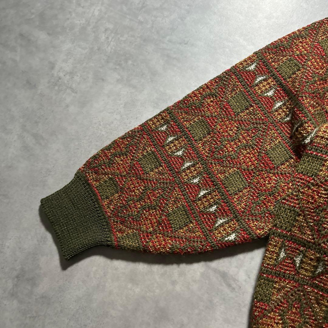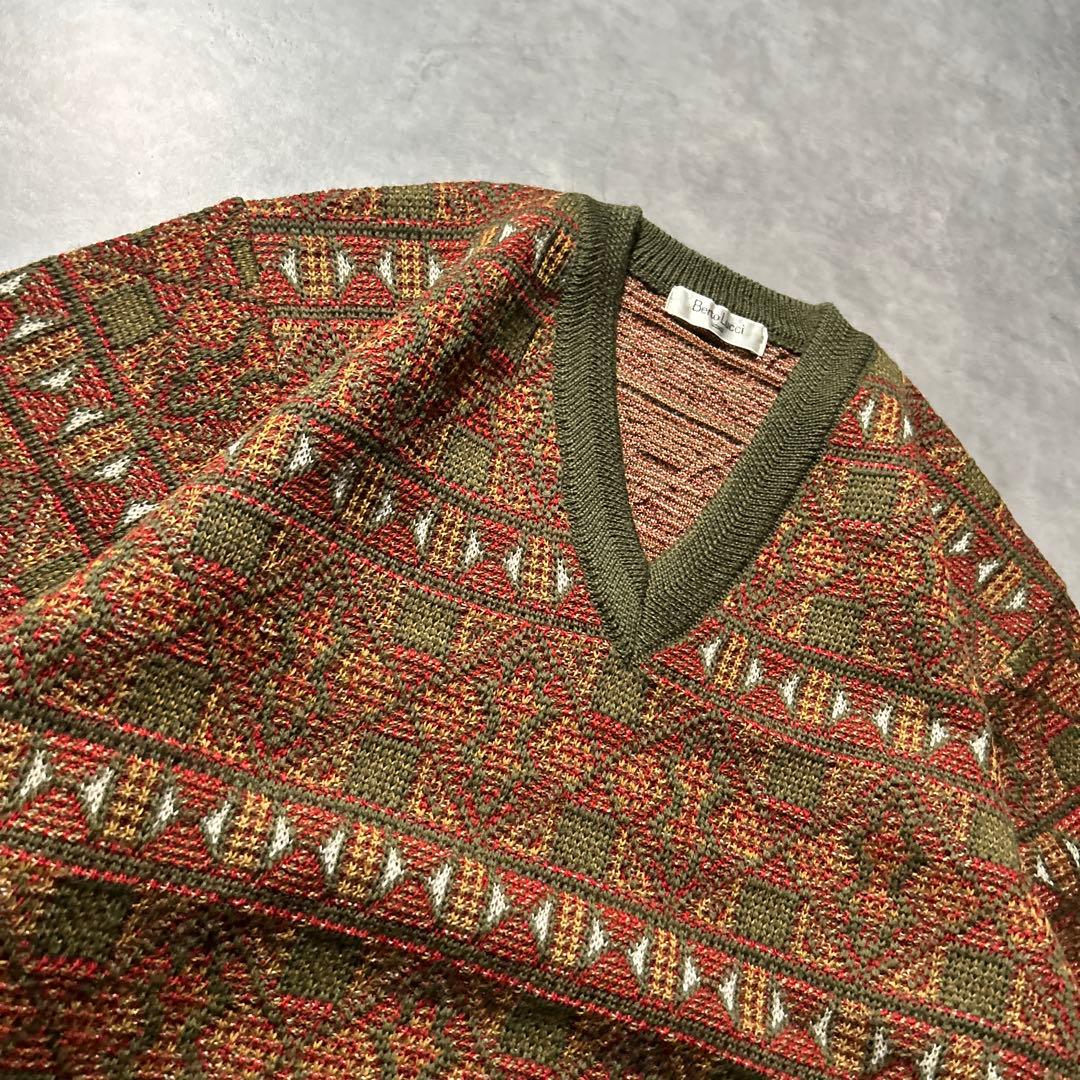 Berto Lucci ヴィンテージ 総柄 幾何学 模様 Vネック ニット