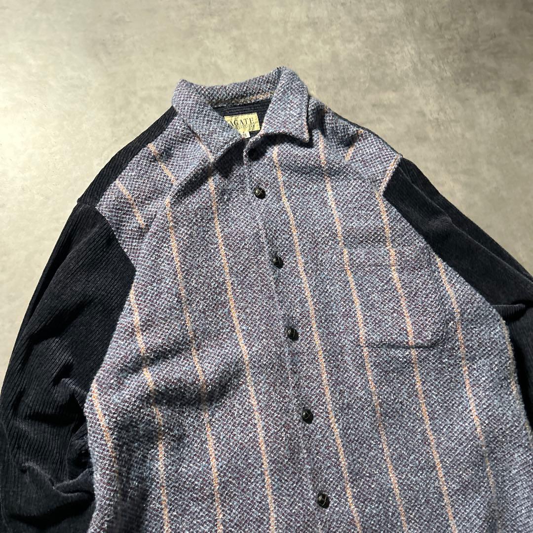 ヴィンテージ 総柄 切り替え コーデュロイ 肉厚 レトロ デザイン シャツ