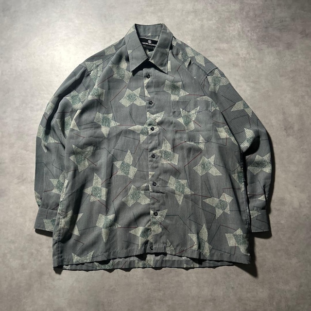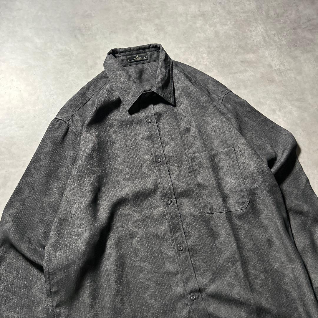 ヴィンテージ グレー モノトーン ストライプ パターン モード シャツ