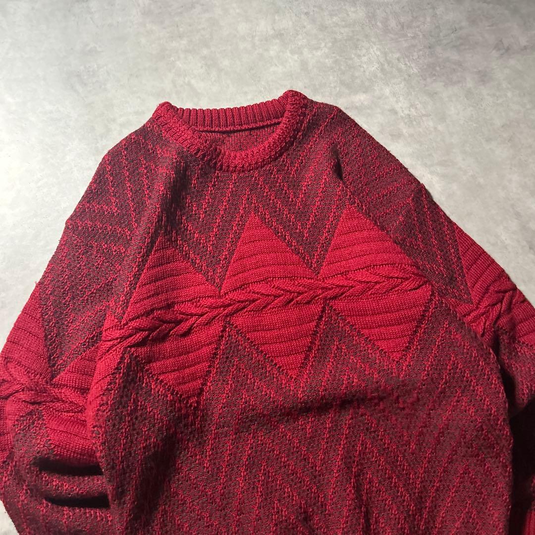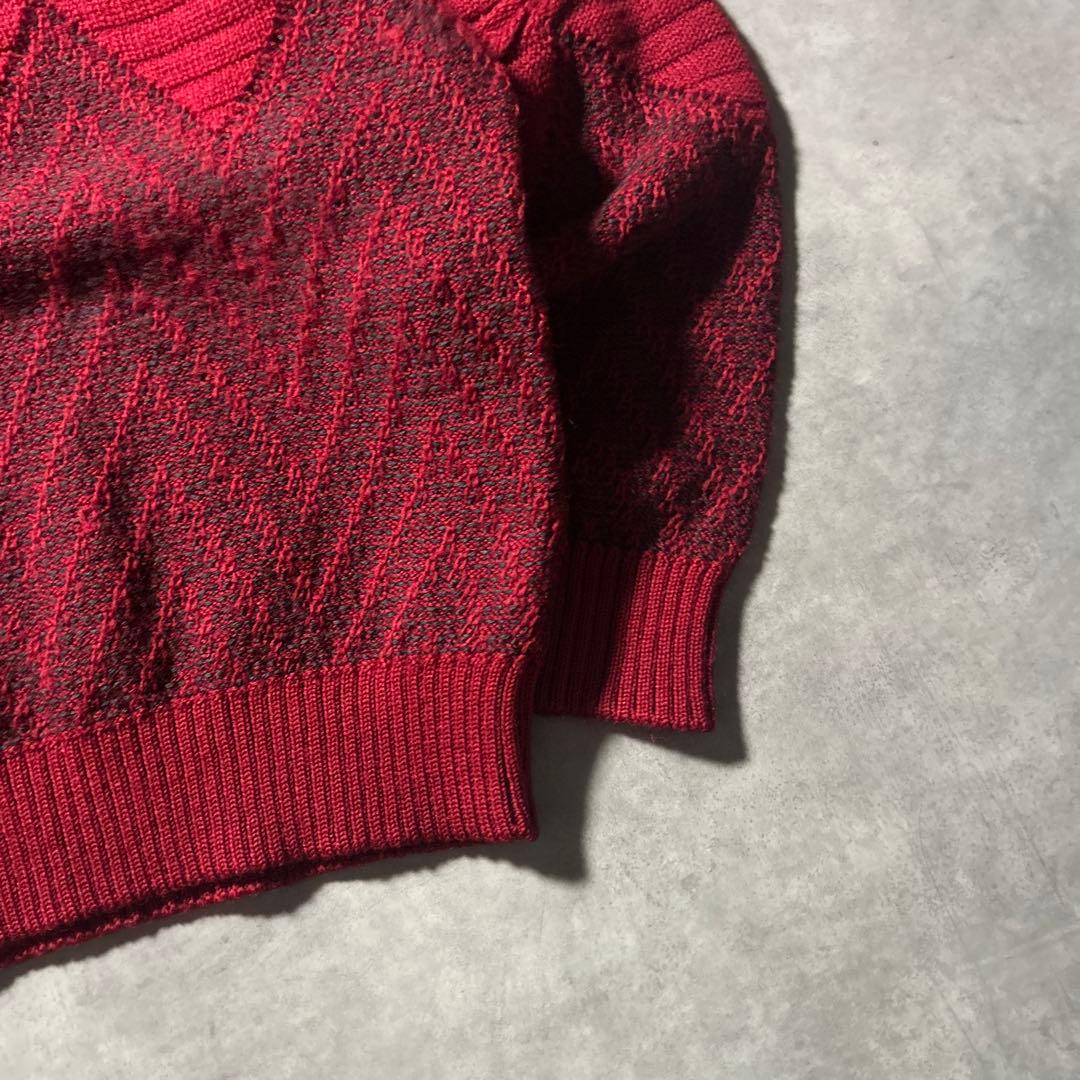 ヴィンテージ ノルディック レッド アーガイル ウール ニット セーター
