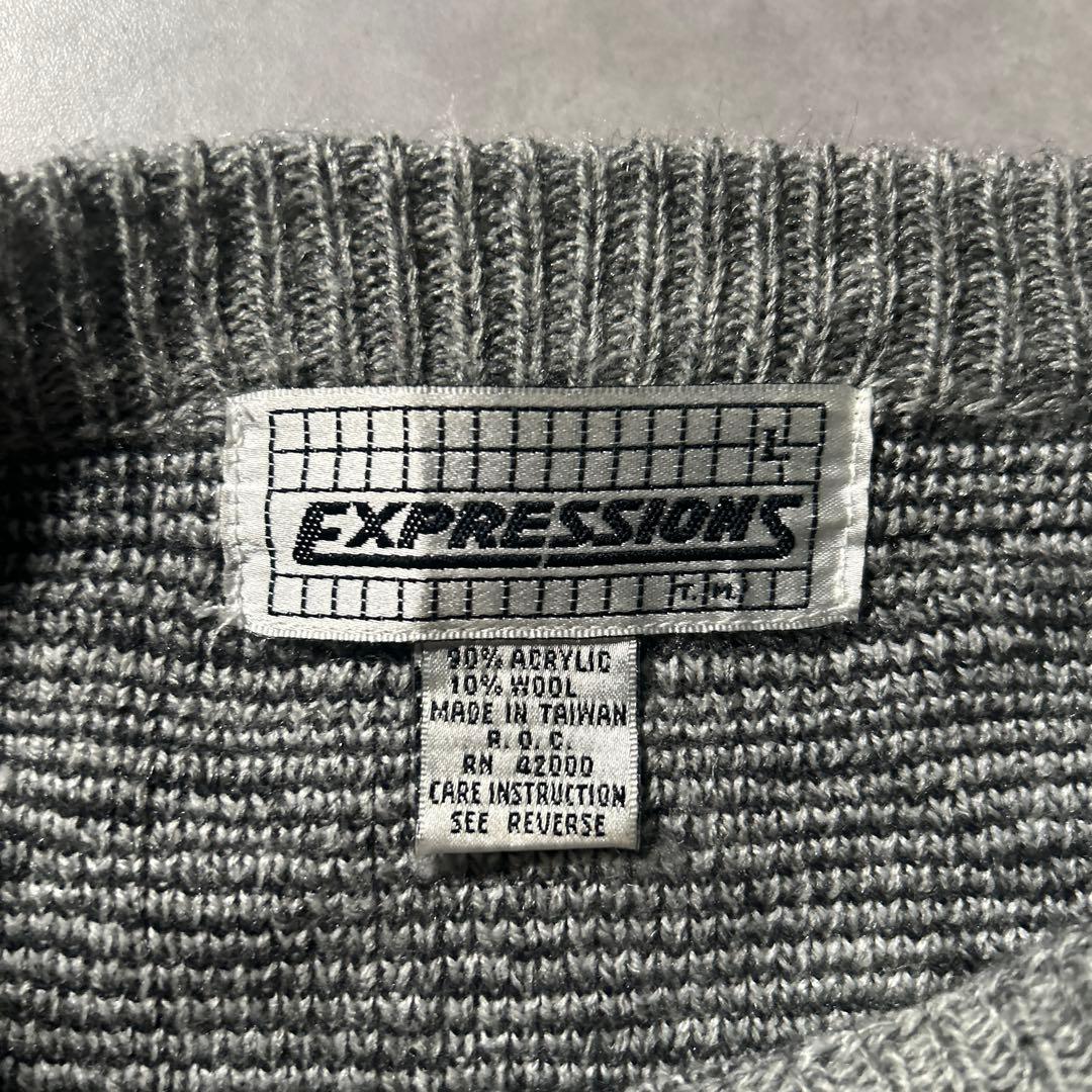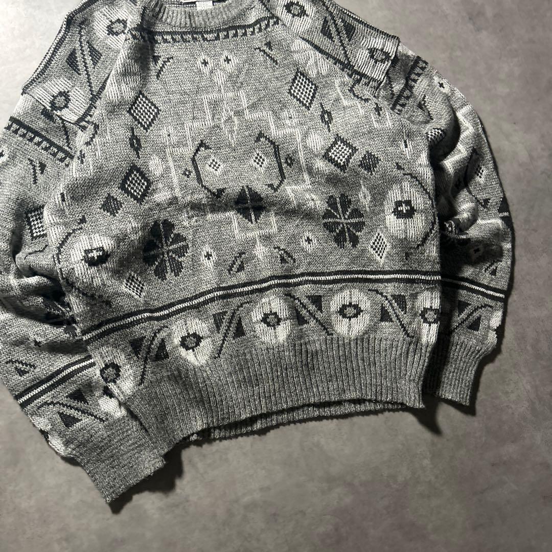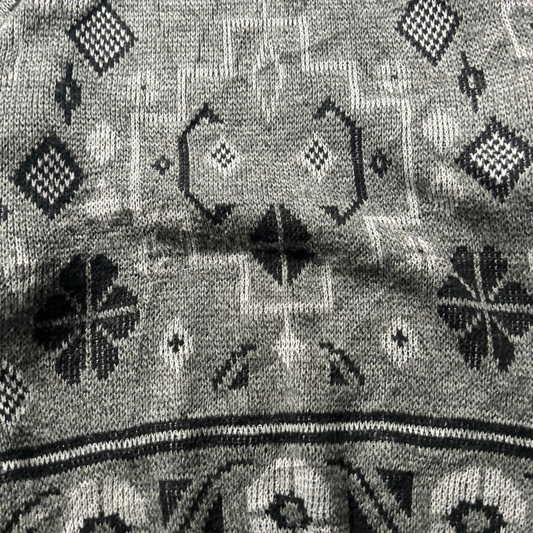 ヴィンテージ アクリル 総柄 民族模様 レトロ グレー モノトーン ニット