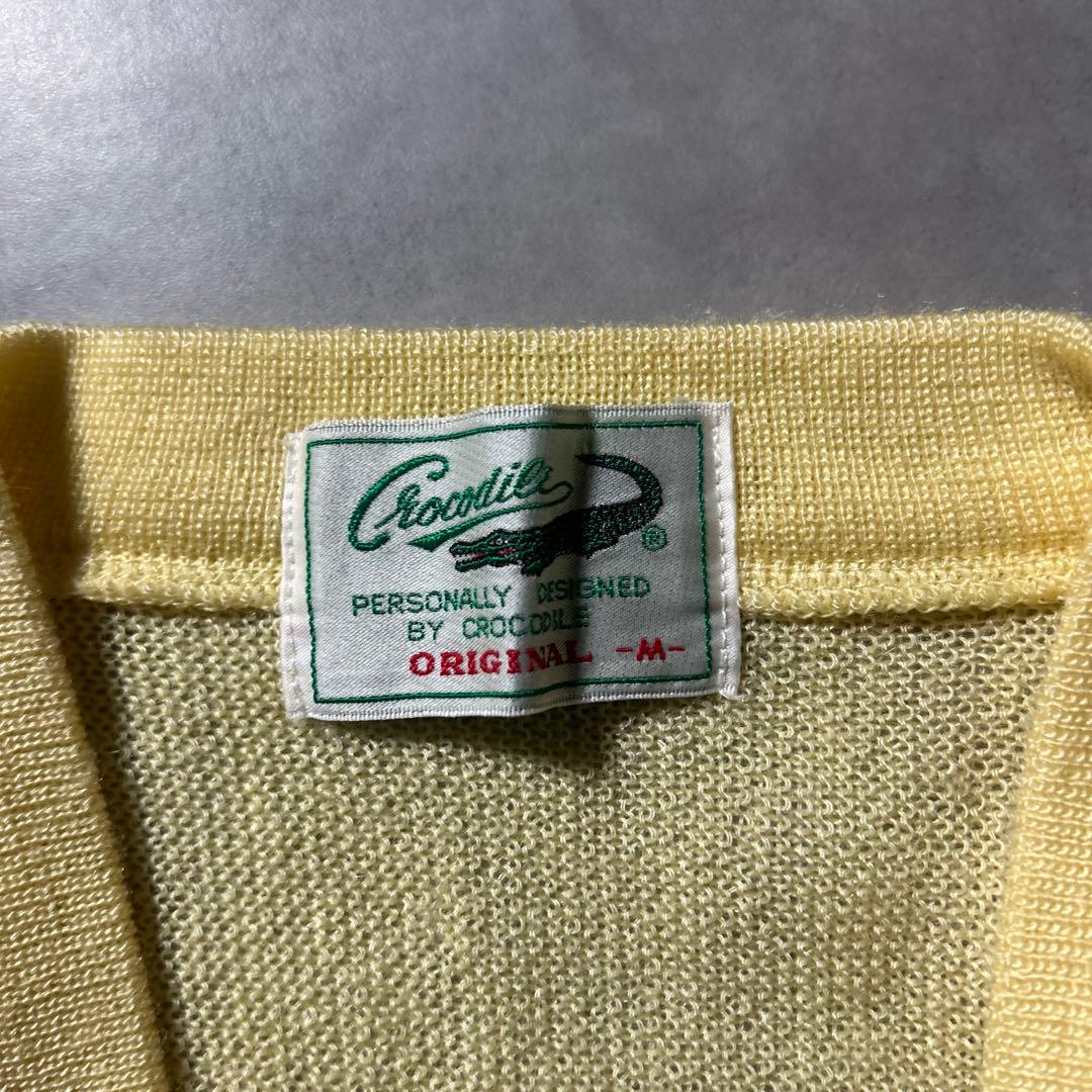 クロコダイル ワンポイントロゴ アクリル イエロー カーディガン ニット