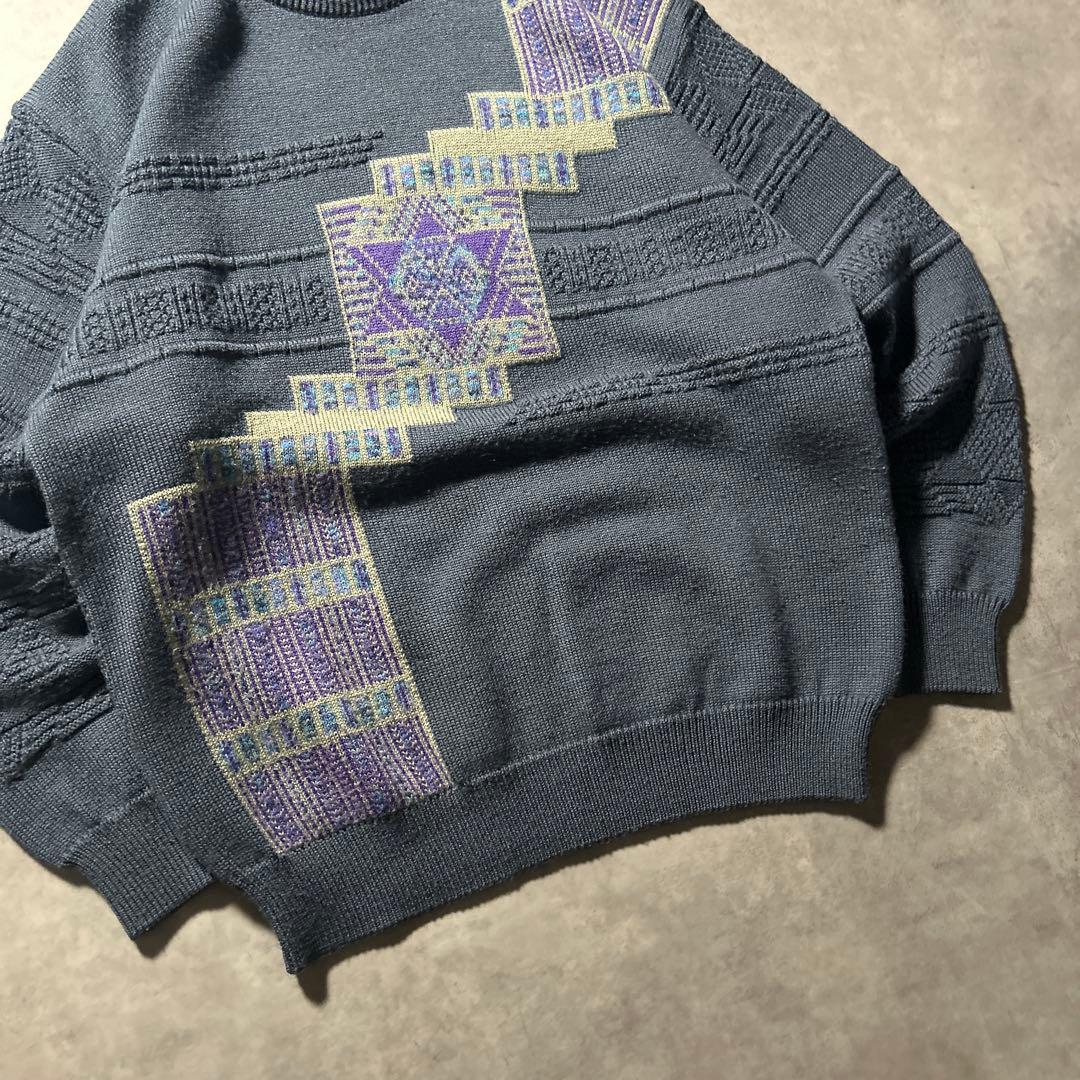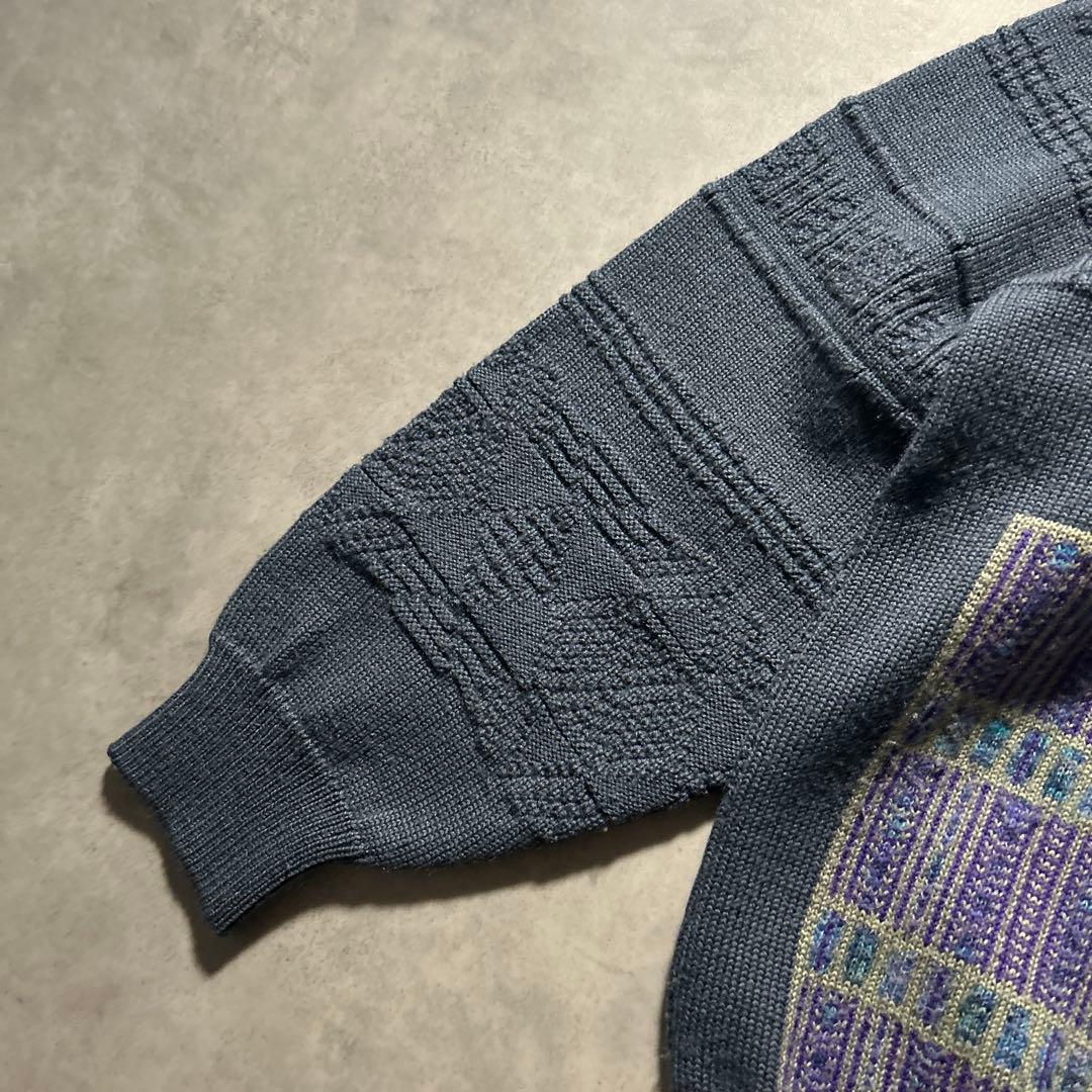 KINGS LORD ブルー ケーブル 幾何学 模様 レトロ ニット セーター