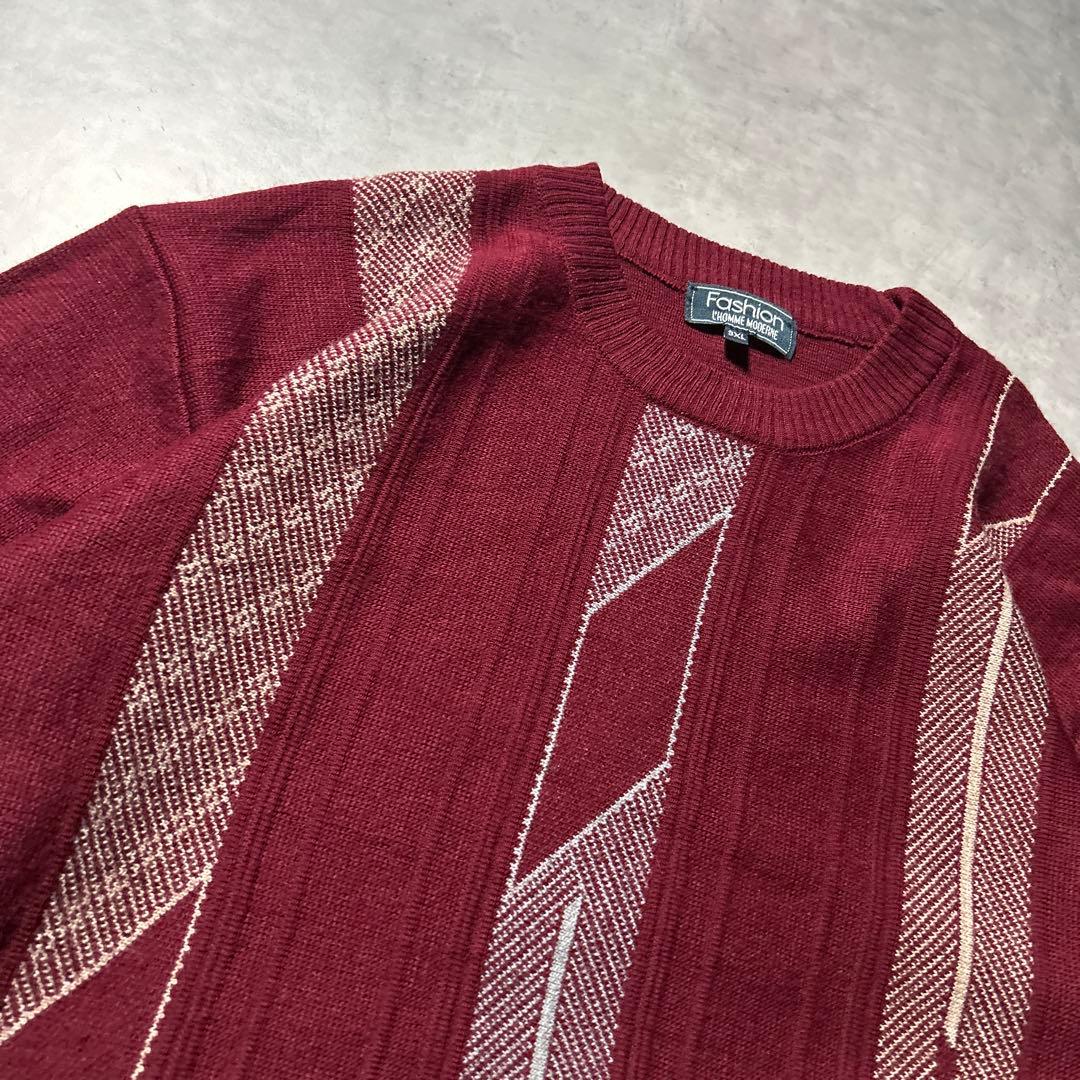 ヴィンテージ レッド 幾何学 ボーダー ビックサイズ ゆるだぼ ニット セーター