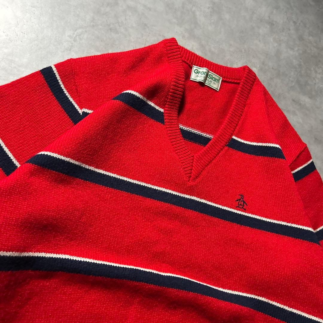 ヴィンテージ ボーダー アクリル Vネック 古着 ユーロ デザイン ニット