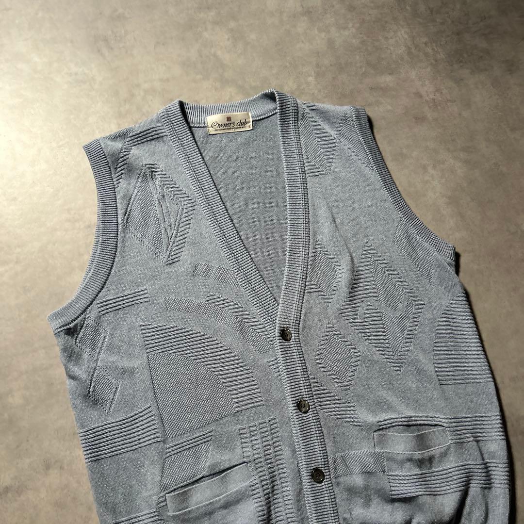 ヴィンテージ ケーブル ブルー マルチポケット ニット ベスト カートコバーン