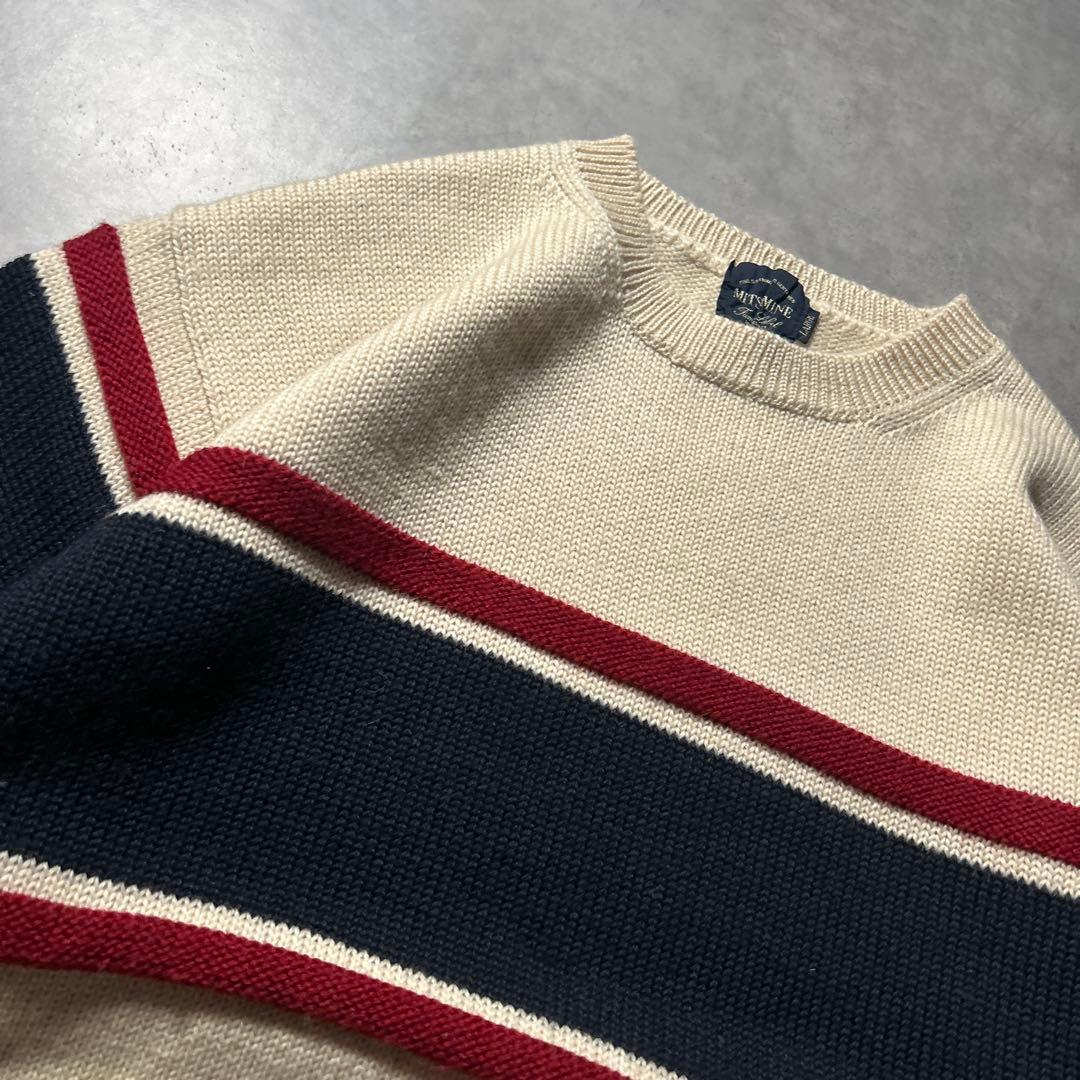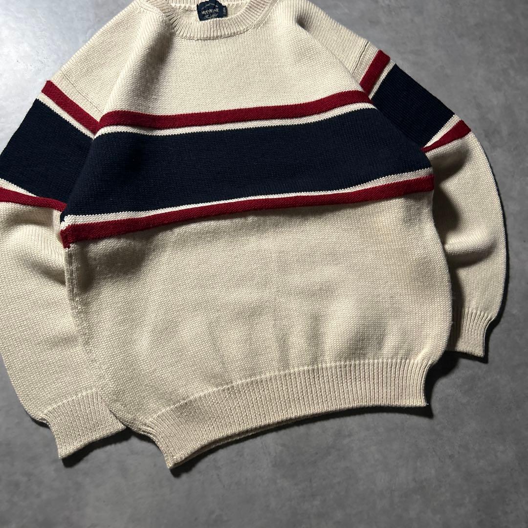 ヴィンテージ 100%ウール ケーブル ボーダー ノルディック ニット セーター