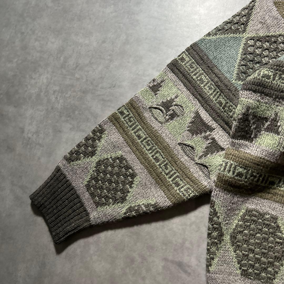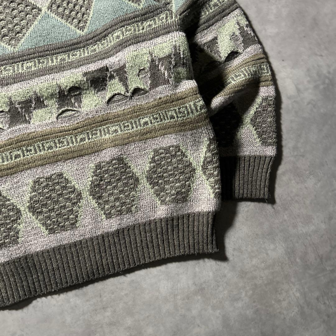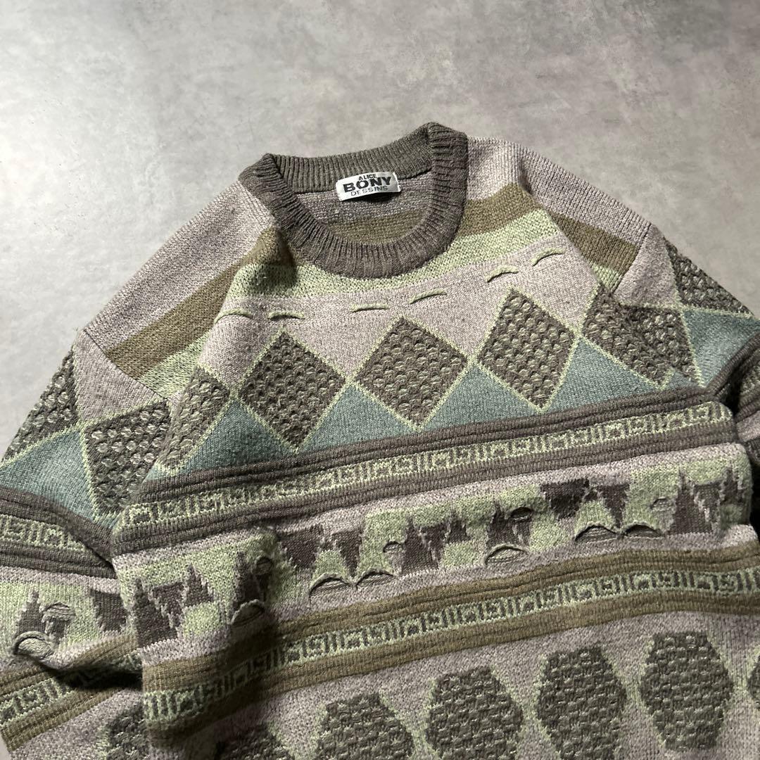 ヴィンテージ 3D 立体 肉厚 幾何学 模様 デザイン ニット セーター