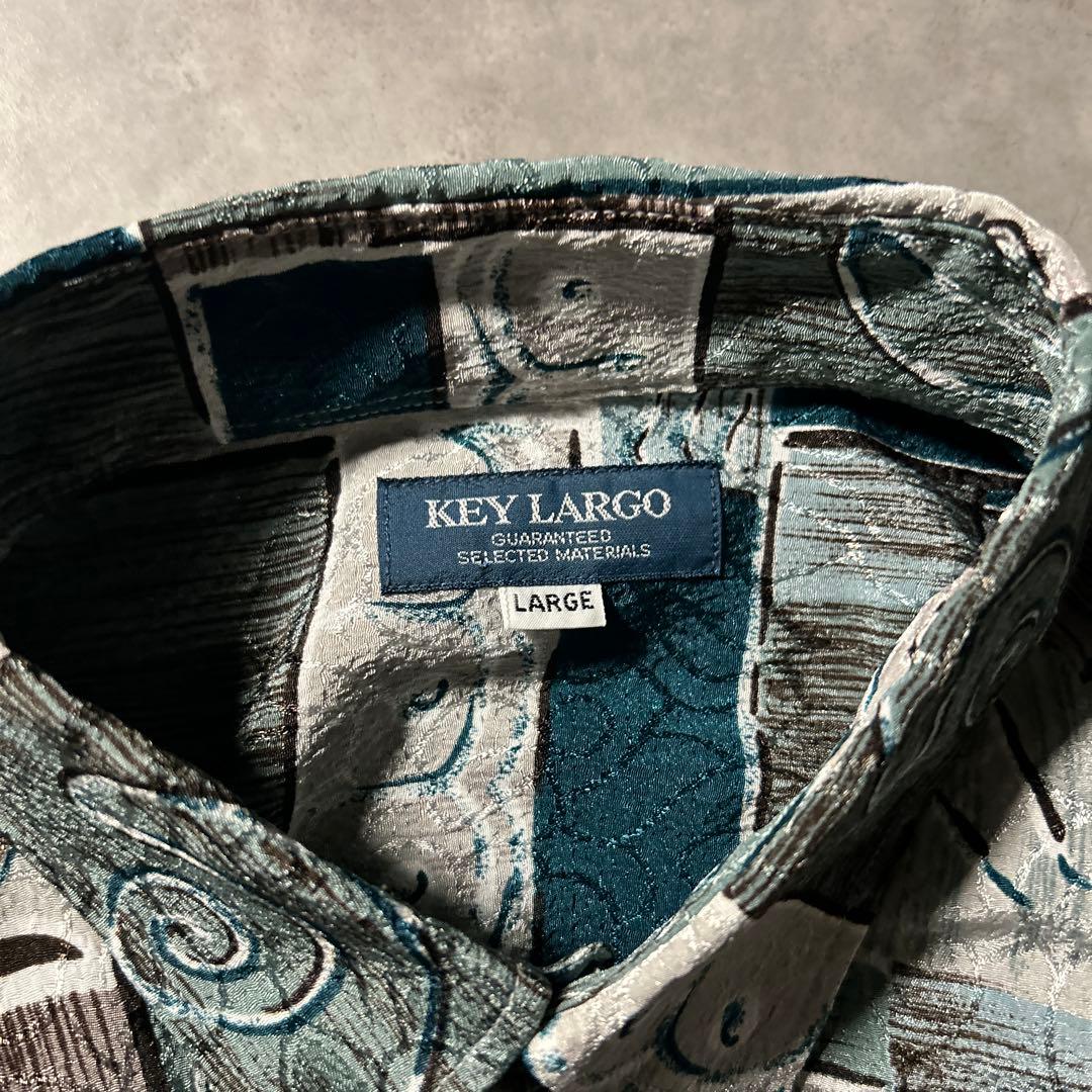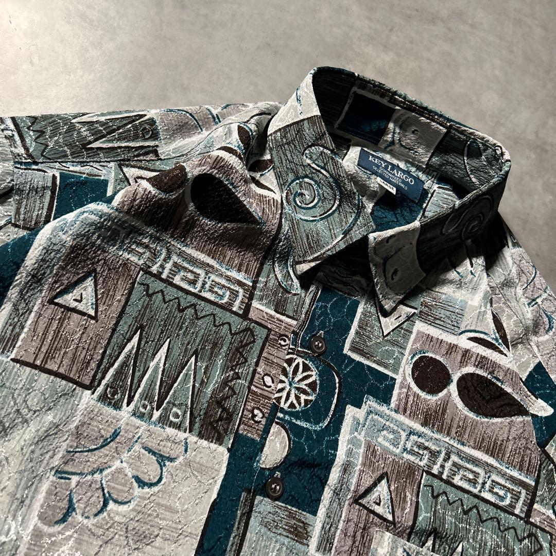 KEY LARGO ヴィンテージ 総柄 幾何学 模様 レトロ 光沢 シャツ