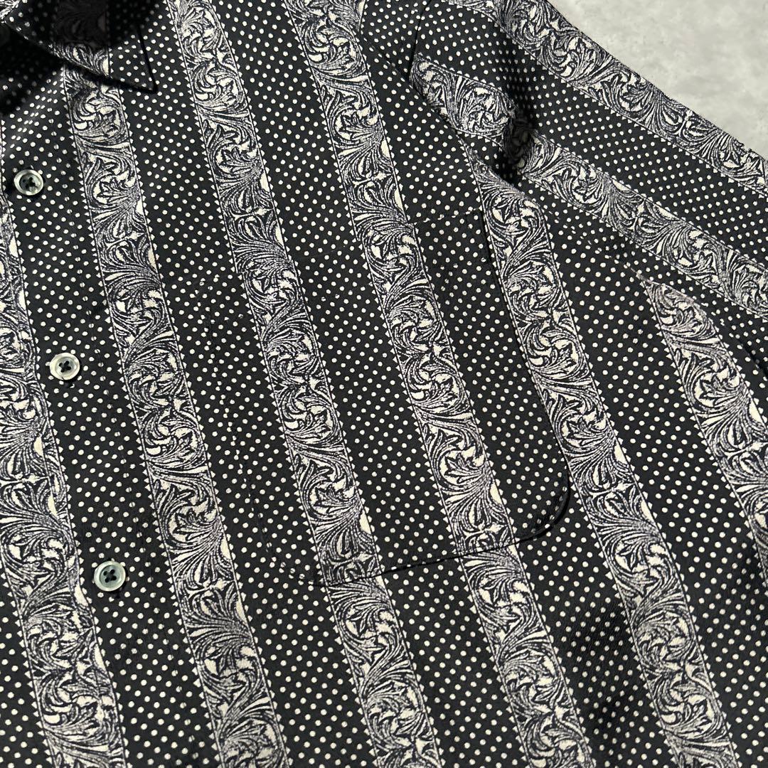 ヴィンテージ 水玉 花柄 ブラック モノトーン アートパターン シャツ