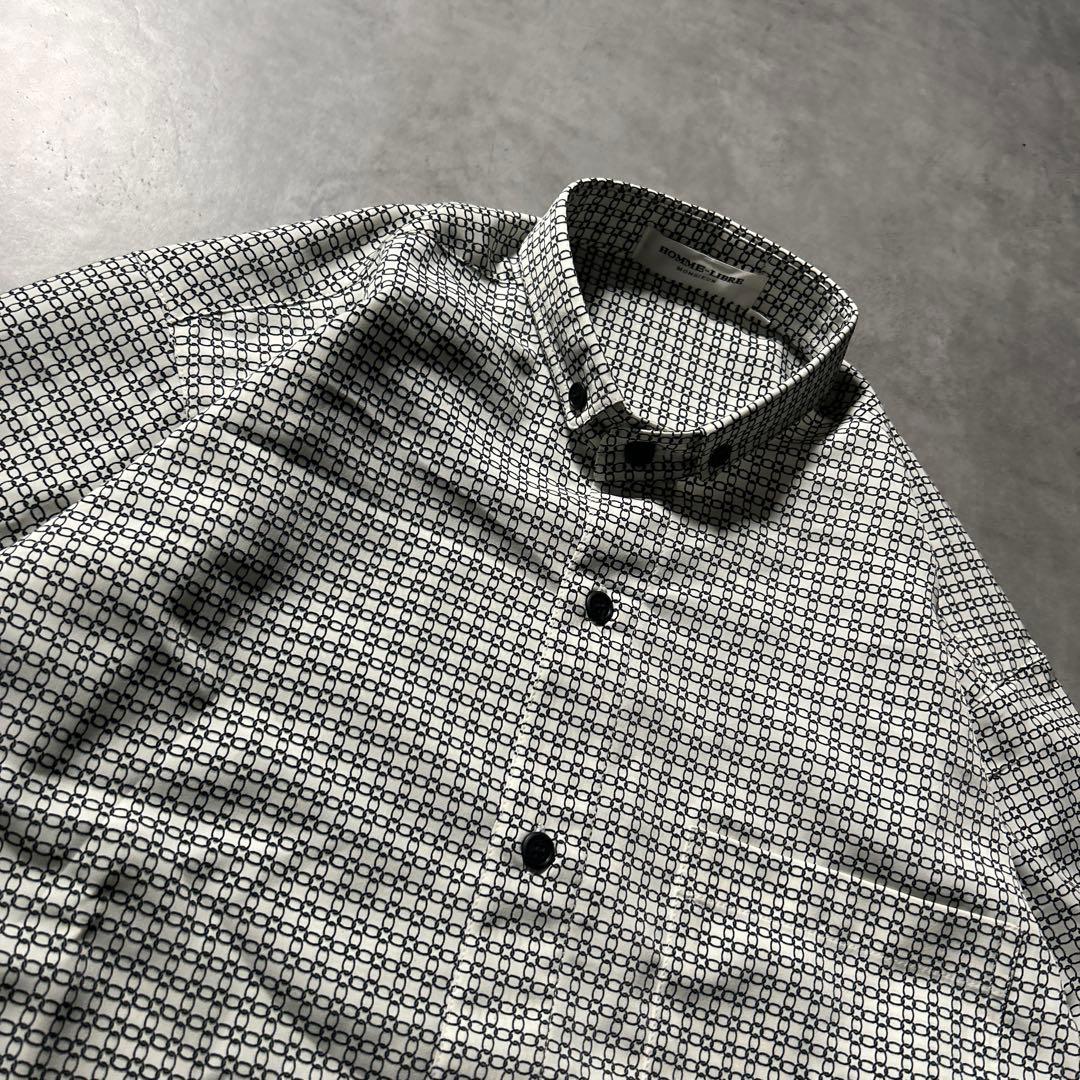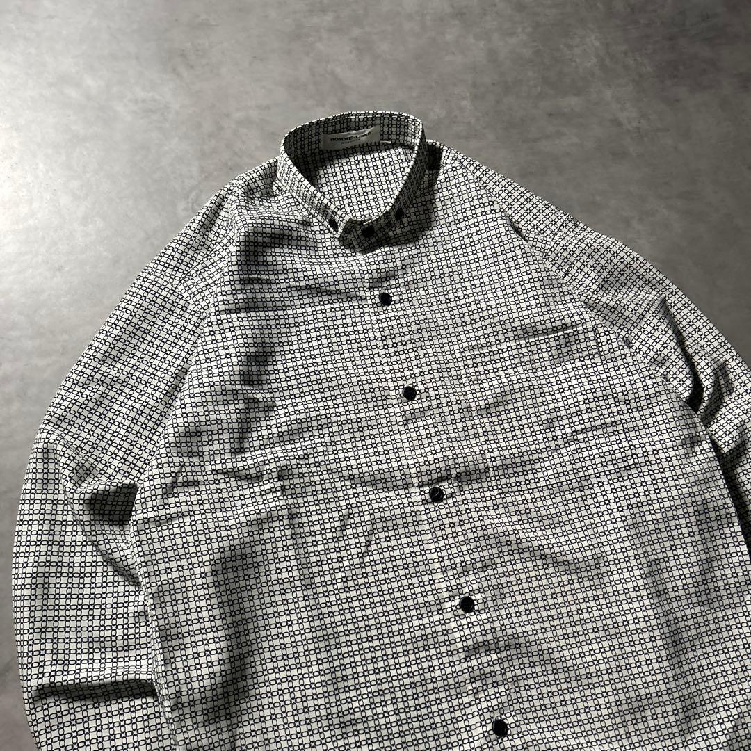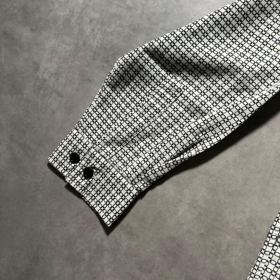 ヴィンテージ 総柄 バンドカラー モノトーン デザイン レトロ シャツ