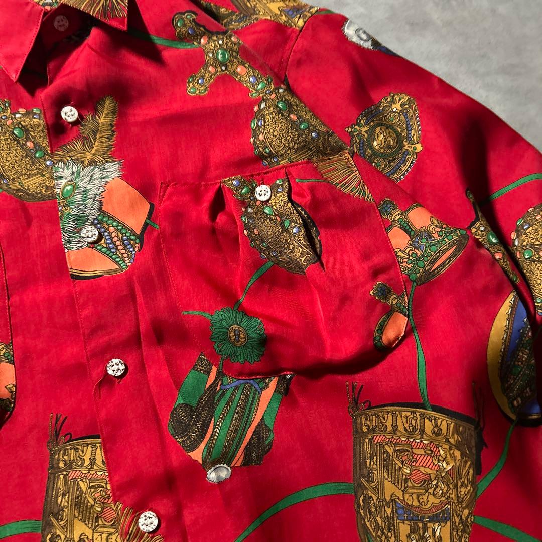 ヴィンテージ レッド ヨーロピアン アートパターン ユーロ デザイン シャツ