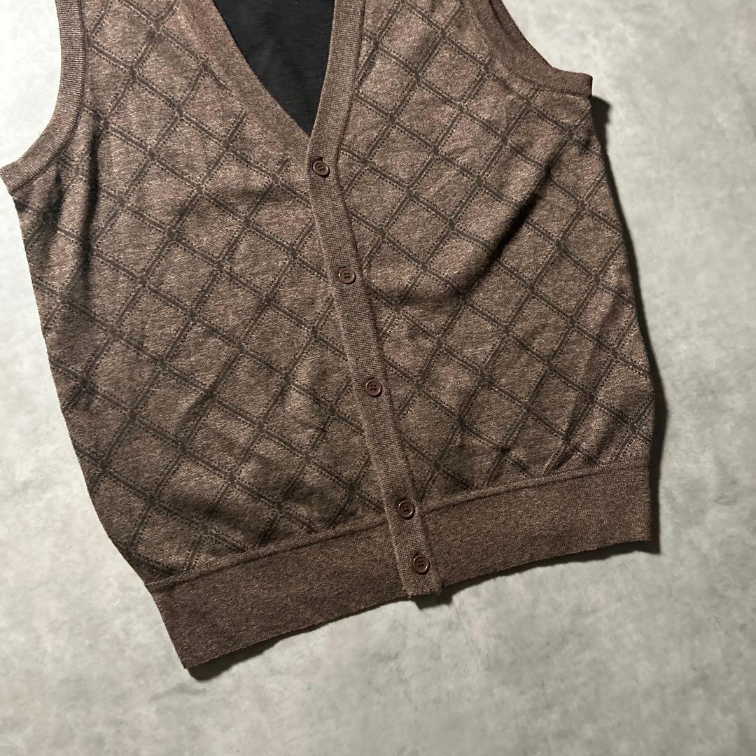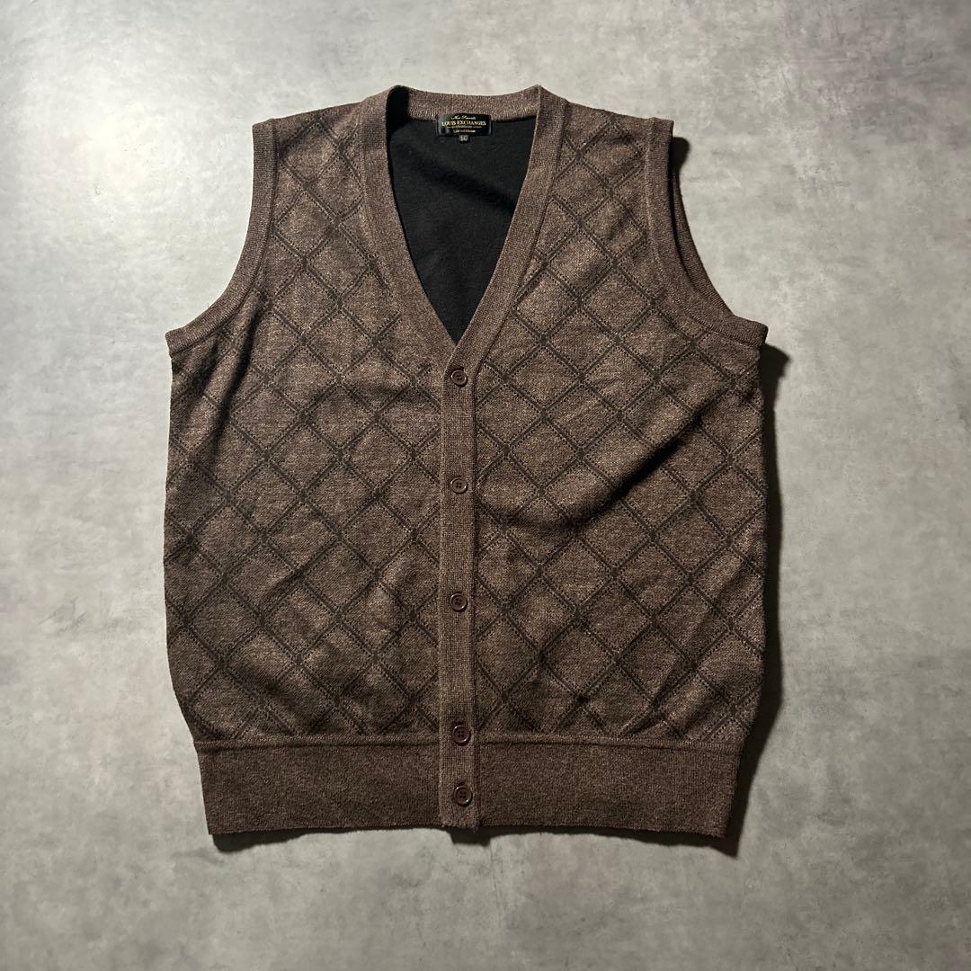 ヴィンテージ ブラウン チェック ギンガム デザイン ニット ベスト