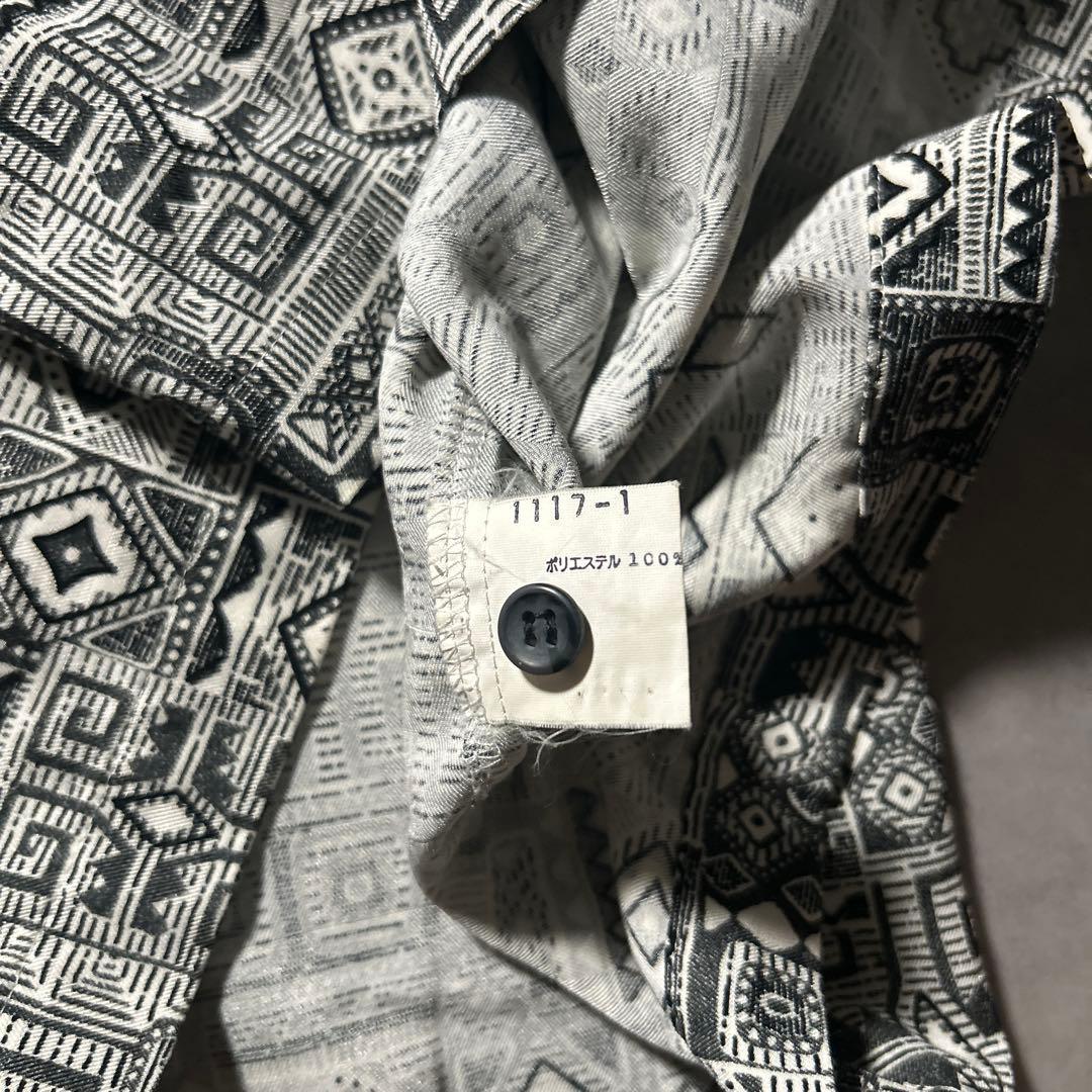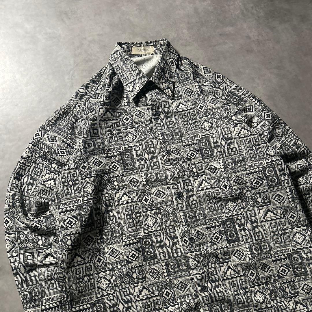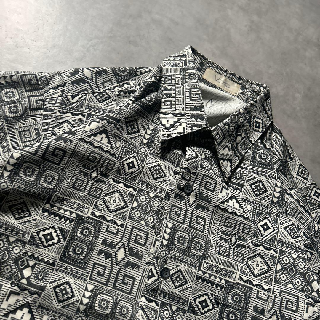 ヴィンテージ 総柄 民族 模様 和柄 モノクロ アートパターン デザイン シャツ