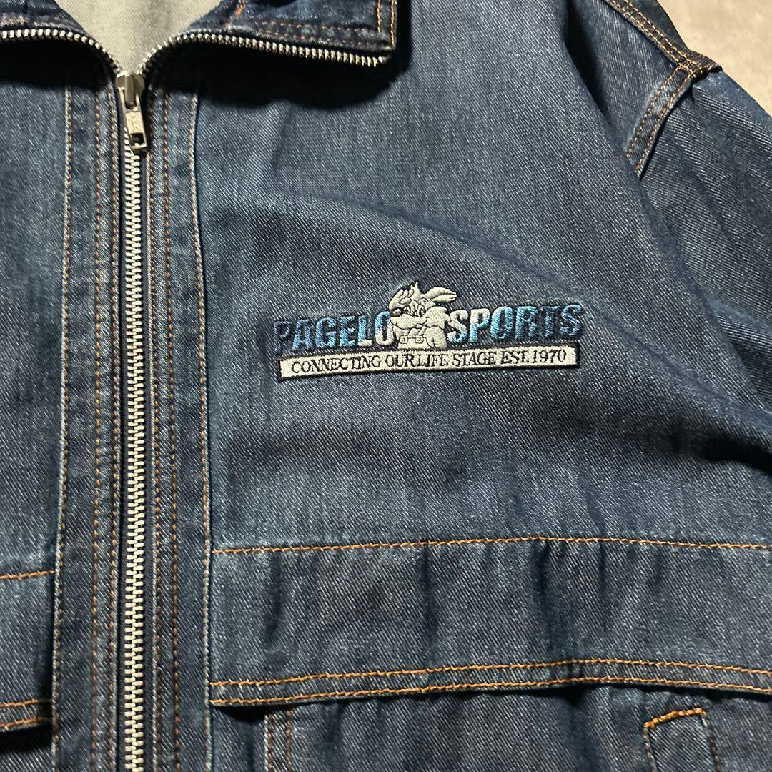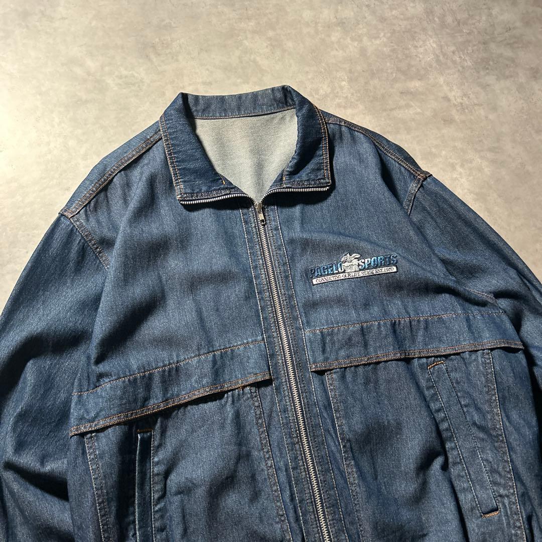 ヴィンテージ ワンポイントロゴ 刺繍 アニマル ジップアップ デニム ブルゾン