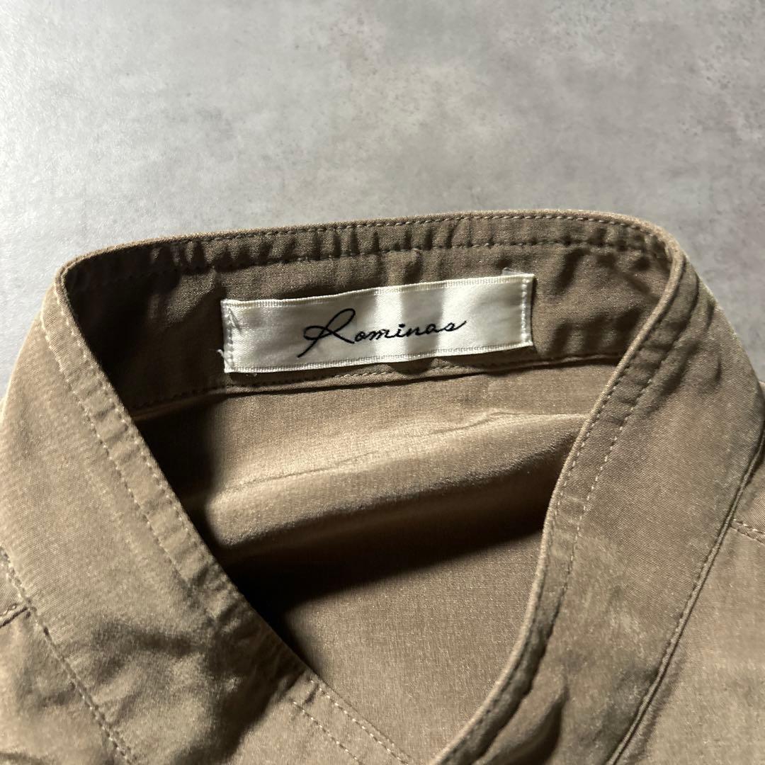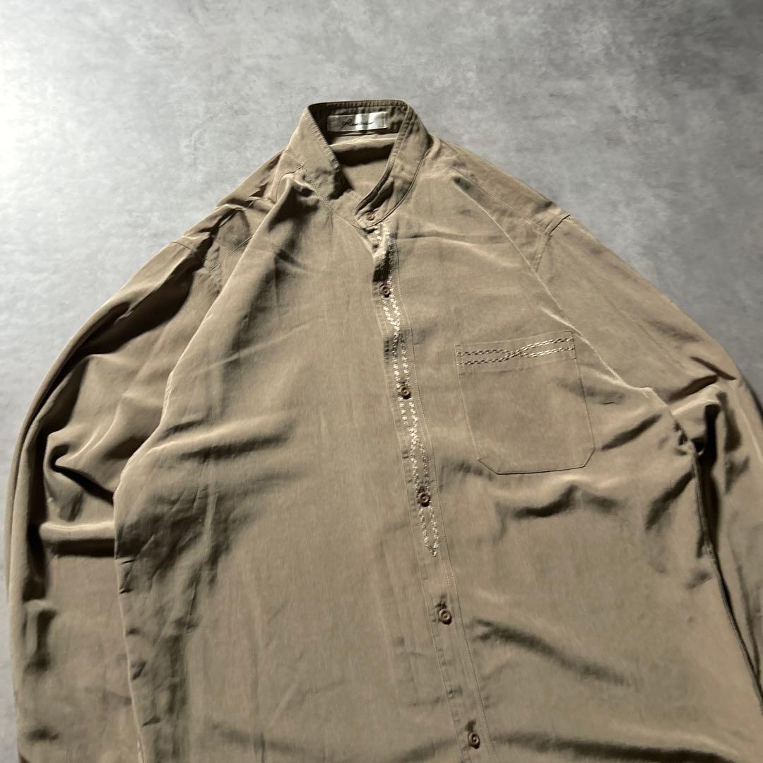 ヴィンテージ バンドカラー ベージュ ワントーン レトロ デザイン シャツ