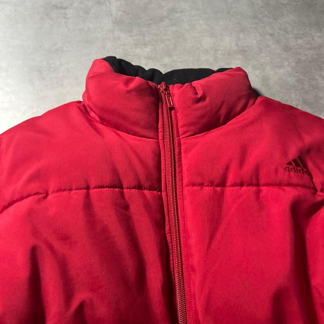 adidas ワンポイントロゴ ダウン ジャケット ジップアップ レッド