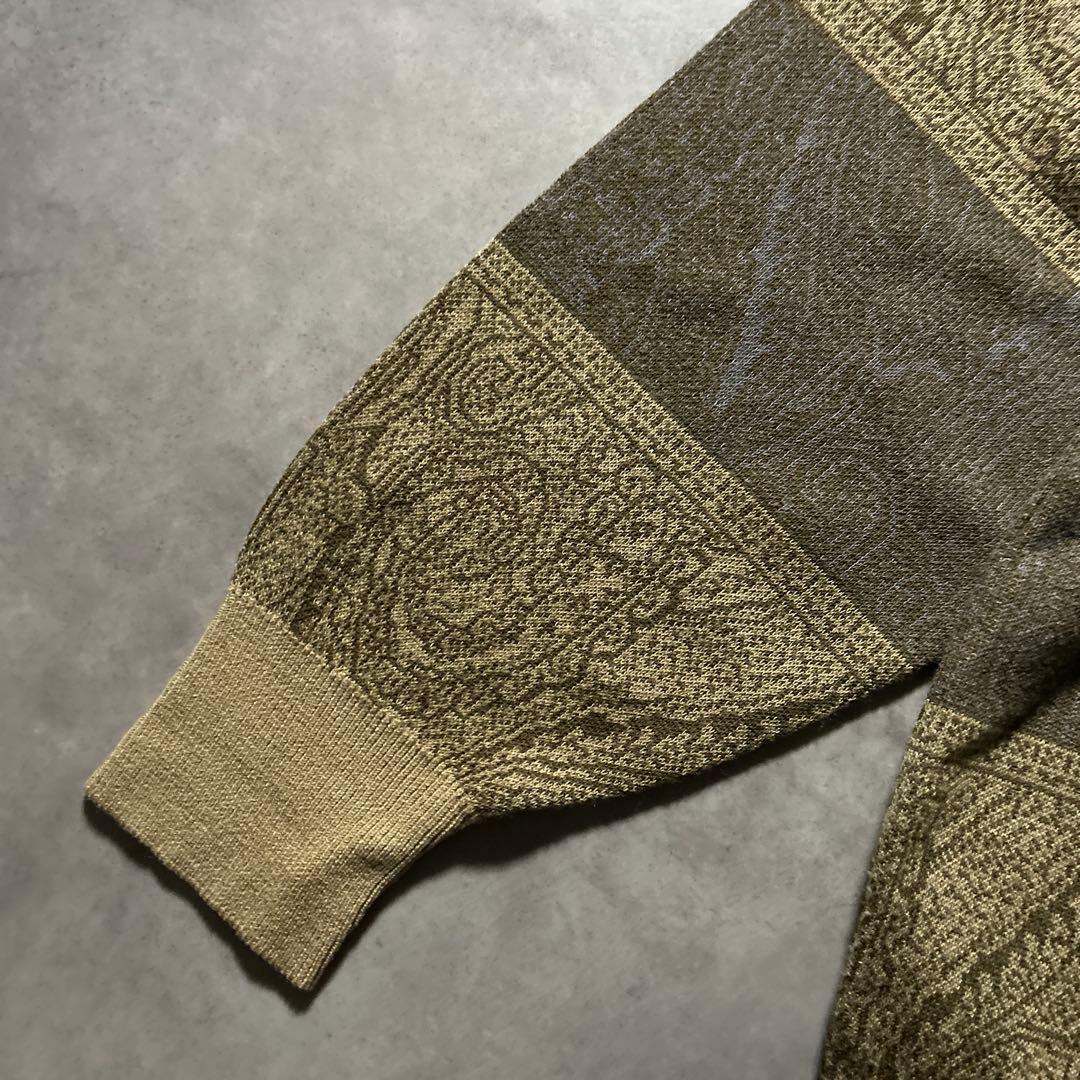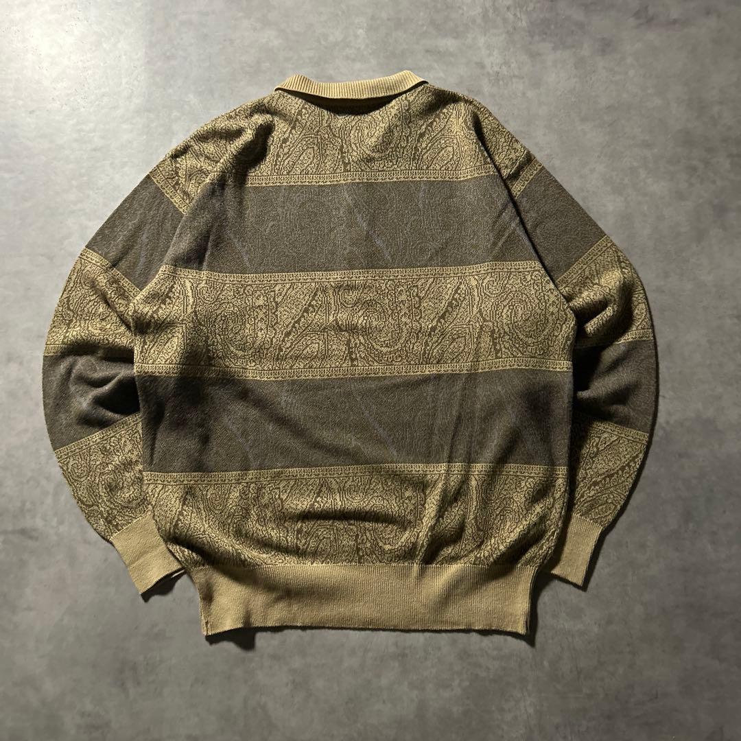 ヴィンテージ ベージュ ボーダー 幾何学 模様 レトロ ニット ポロシャツ