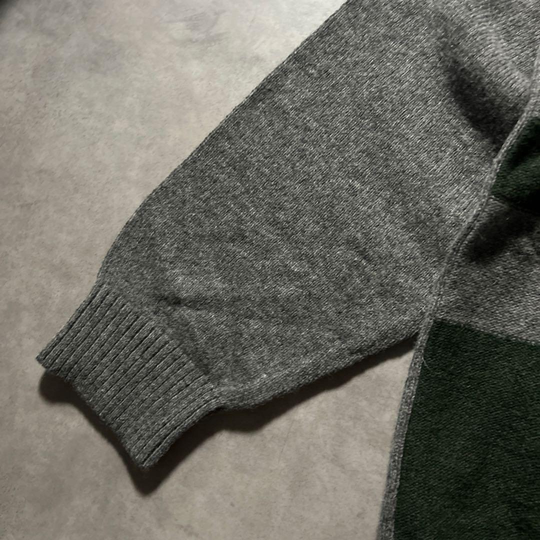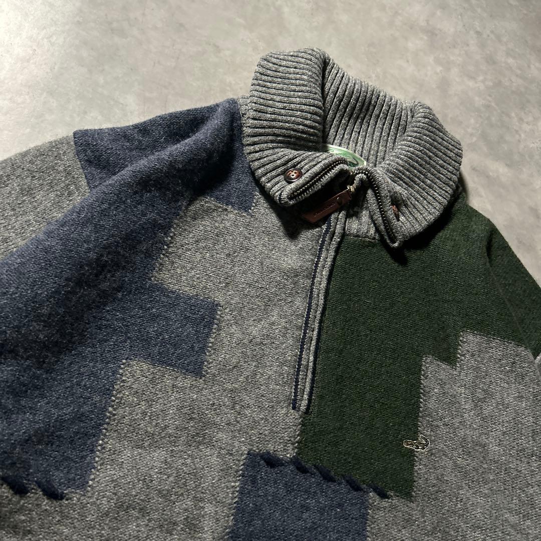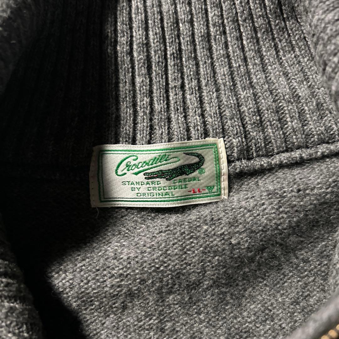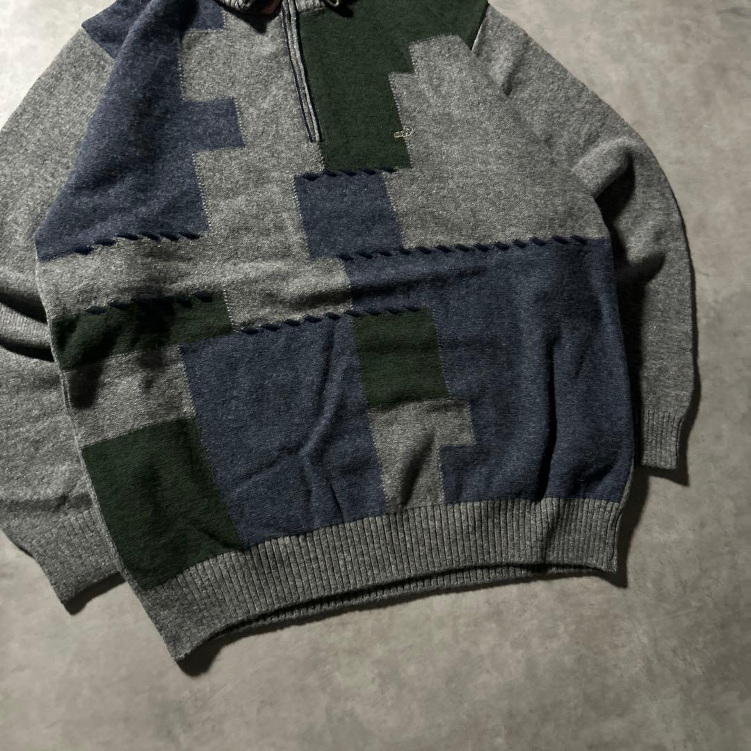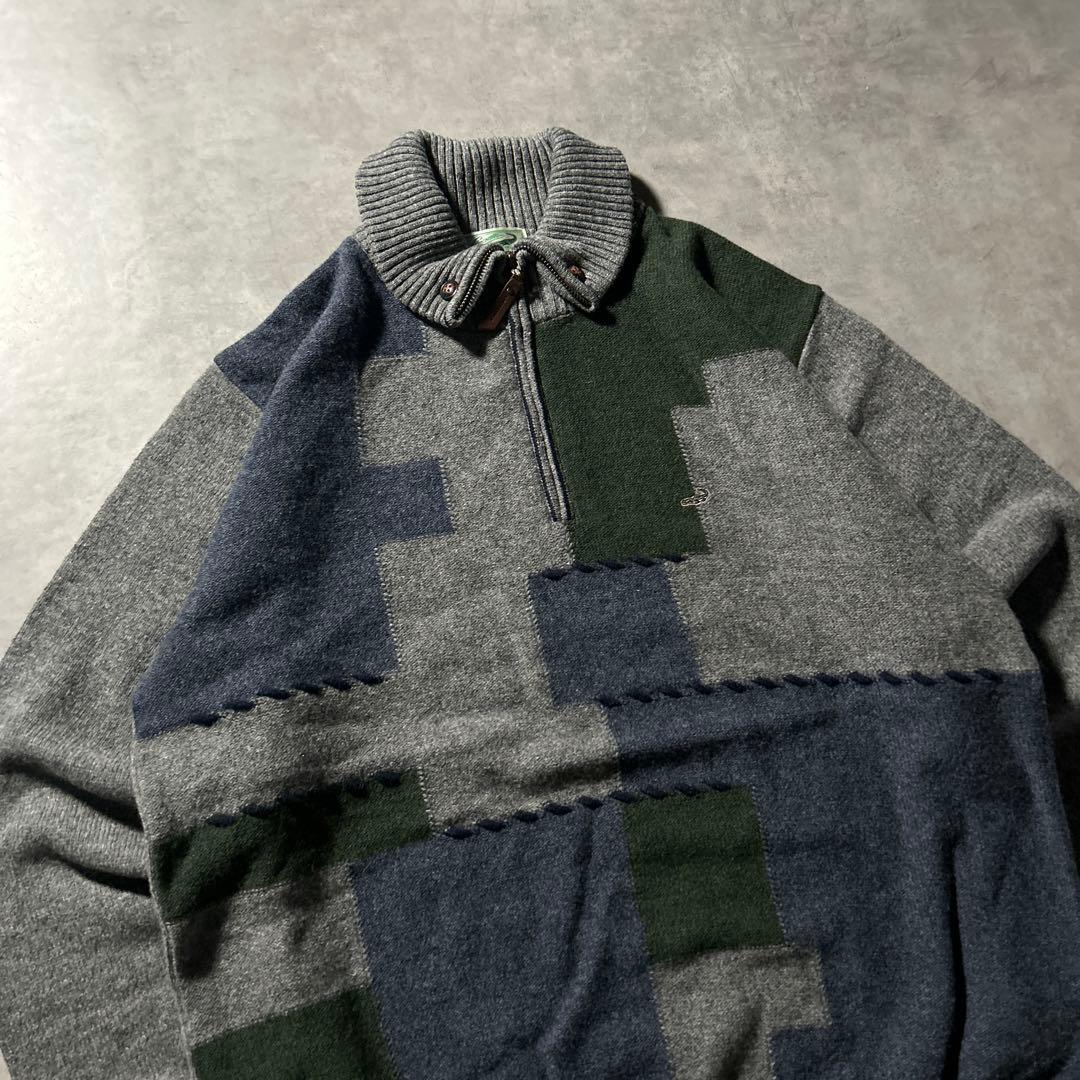 ワンポイントロゴ クロコダイル ハーフジップ 切り替え レトロ ニット セーター